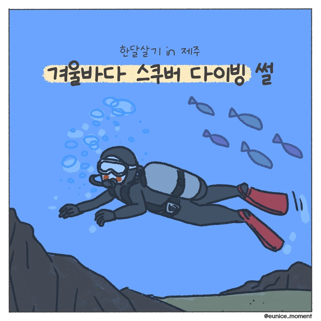 그래서 이날 뭘 하면 좋을지 고민했는데 제주 바다는 수온이 따뜻해 겨울에도 스쿠버 다이빙을 할 수 있다는 걸 알게 되었다.