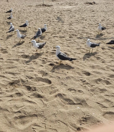 그렇게 우리는 인천공항을 지나 애견 동반이 가능하고 을왕리보다는 덜 붐비는 ‘왕산해수욕장’으로 왔다. 철썩철썩 파도소리, 포말 사이로 쉬고 있는 갈매기 떼들.... 평일이라 그런지 '사회적 거리두기'를 따로 하지 않아도 될 만큼 사람이 없었다.