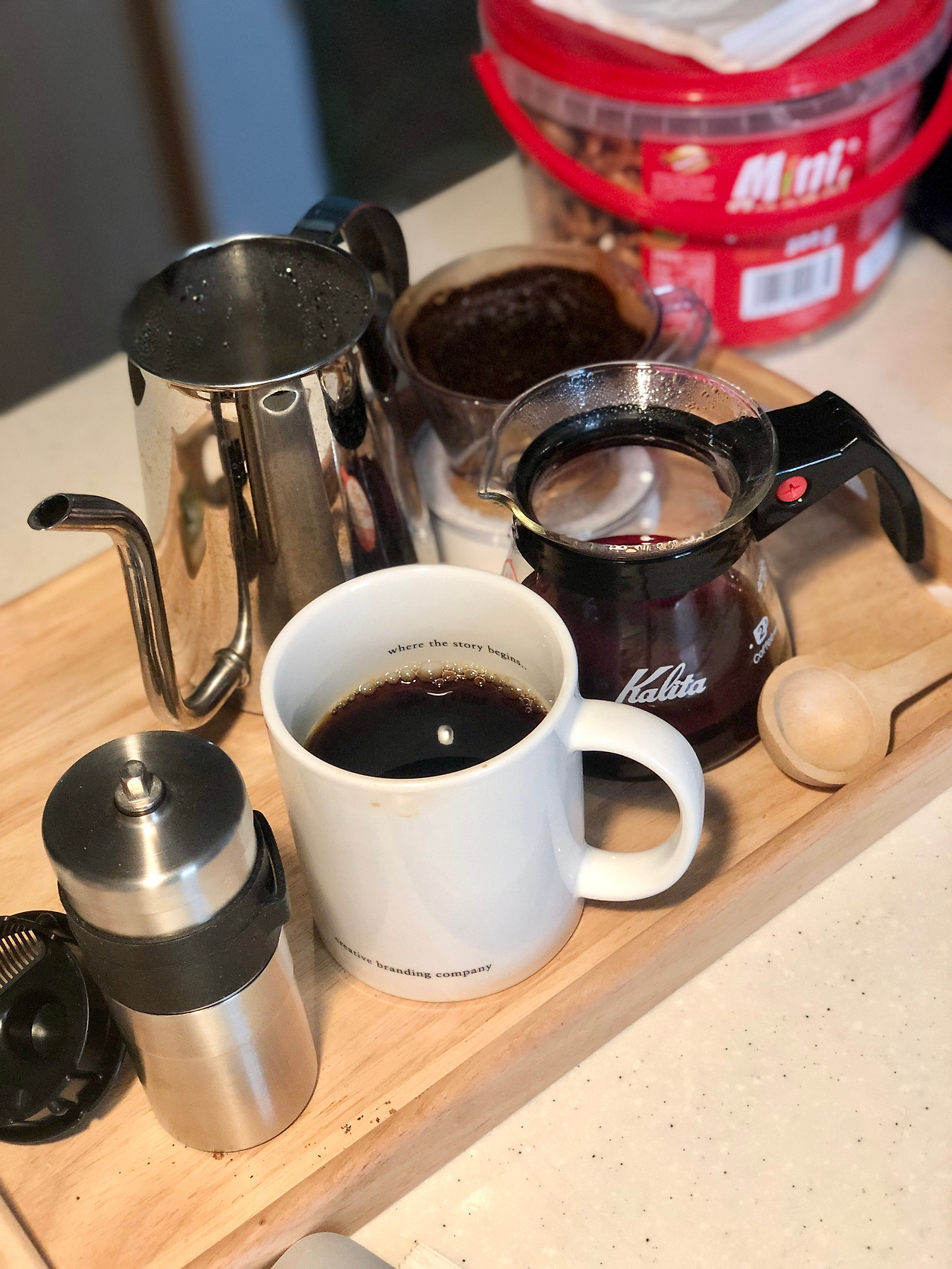 귀찮아도 간만에 콩을 갈아 커피를 내렸다. 커피를 갈 때 나는 세상 기분 좋은 강력한 향기는 좀 덜했지만, 역시 커피 가는 손맛과 함께 기분 좋은 향이 났다. 그리고 원래 마시던 커피가 꽤 좋은 퀄의 싱글 오리진 원두였어서 스벅 원두보단 향이 좀 더 강력하지 싶었다.