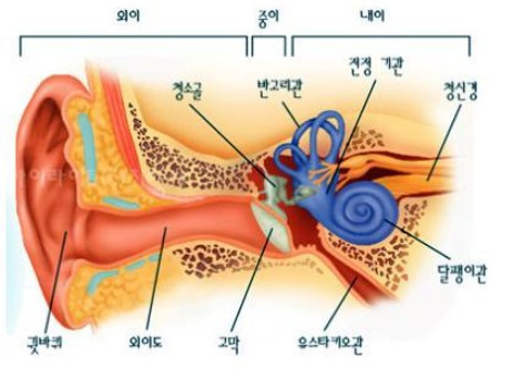 . 귀에서 강렬한 고약한 냄새가 남 -> 노란색, 갈색, 핏빛 분비물