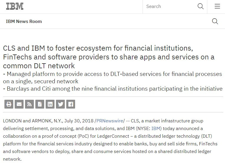 이후에 CLS / R3 / IBM이 주측이 된 결제 인프라 블록체인 프로젝트가 어떻게 진행이 되었는지 후속기사가 없다.