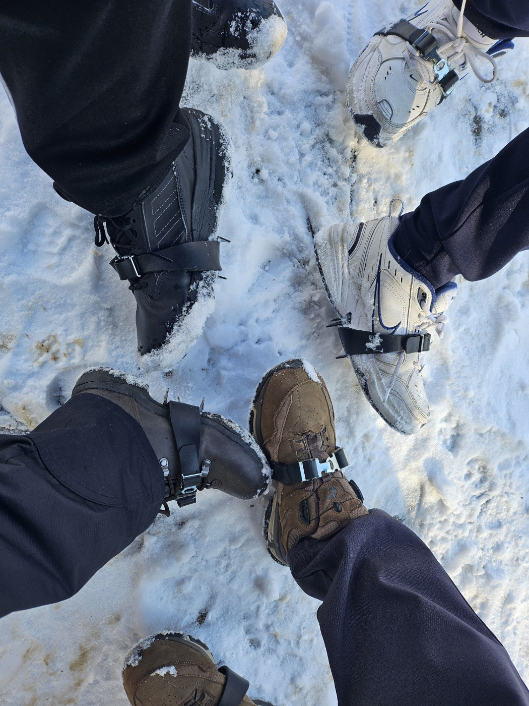 새해니깐 아침엔 떡국을 먹기로 했다. 창밖에 하얗게 덮인 나무들을 보며 눈 덮인 산에 가면 좋겠다고 남편과 얘기를 나누었는데 아이들이 같이 가겠다고 했다. 걸어서 자주 가는 산으로 그리 높지 않지만 눈이 많이 왔기 때문에 아이젠도 준비했다. 약 10년 전 아이들이 미취학 시절, 덕유산의 눈꽃을 구경하기 위해 사용했던 그 아이젠이다.