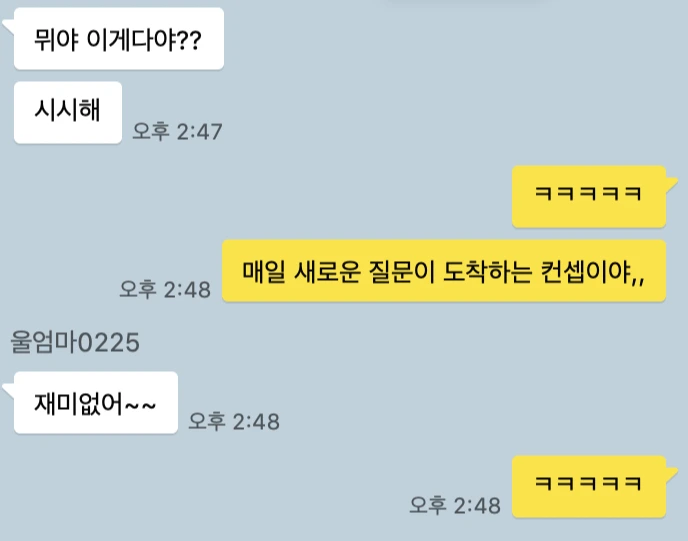 근데 다시 들어가보니 앱 부제에 '하루 한 질문' 이라고 적어놓긴했다!!!