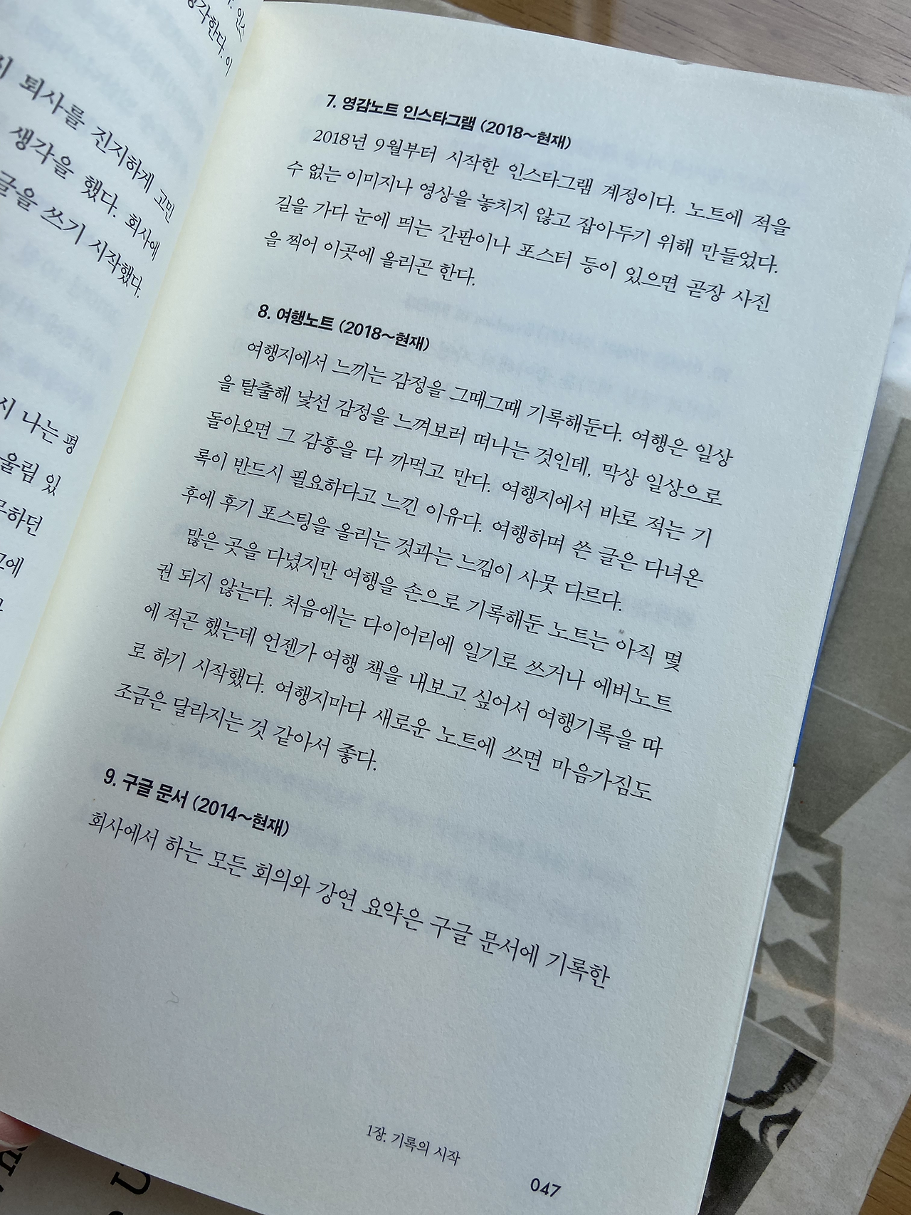 저자는 기록이 쓸모있는(?) 두 가지 근거를 제시한다. 주체성과 나다움. 기록을 하며 주체성을 가지고 살아가게 되고 나다움을 찾게 된다는 것이다.