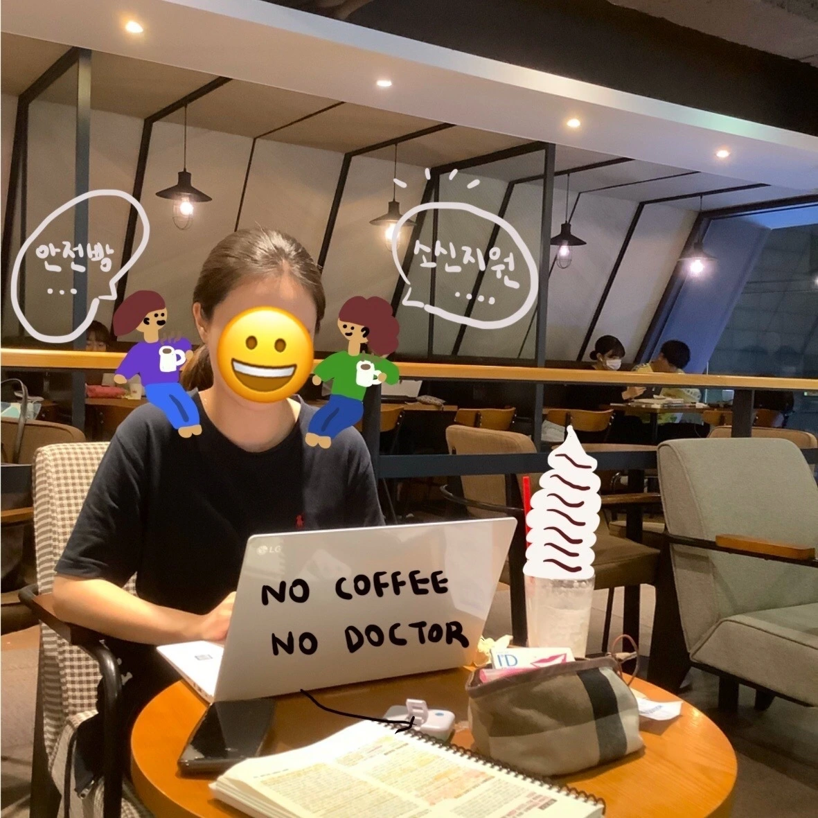 남아있는 시험을 공부하고 있던 친구를 찍어 귀염뽀짝한 그림을 그려주었다 (클래스101의 자토 선생님께 배운 그림-!!)