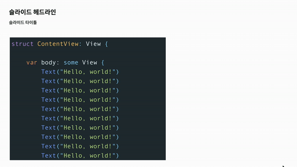 그럼 코드블럭이 슬라이드에 추가됩니다.