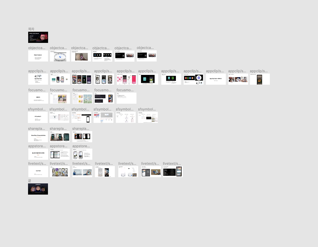예를들어 저는 주제별로 한줄로 배치하고 생각날때 마다 각 주제의 줄에 가서 슬라이드를 추가하는 식으로 만듭니다.