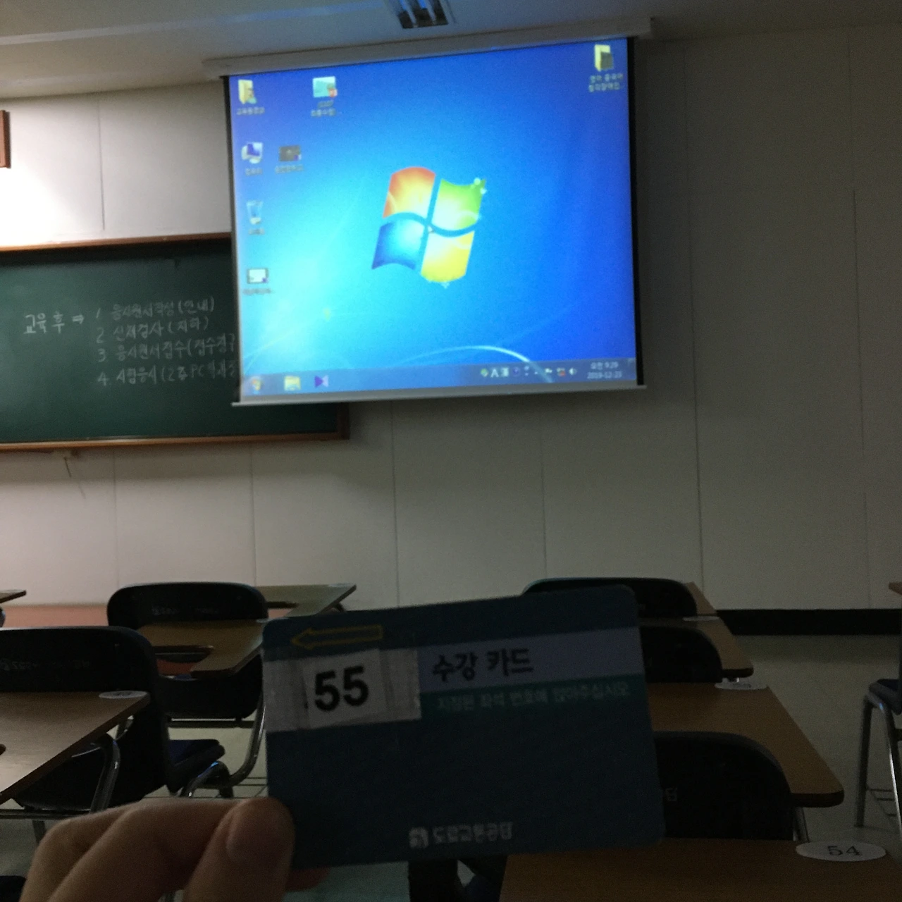 교육장에 오면 수강카드를 받아서 지정된 좌석에 앉고 교육을 들으면 된다. (1시간)