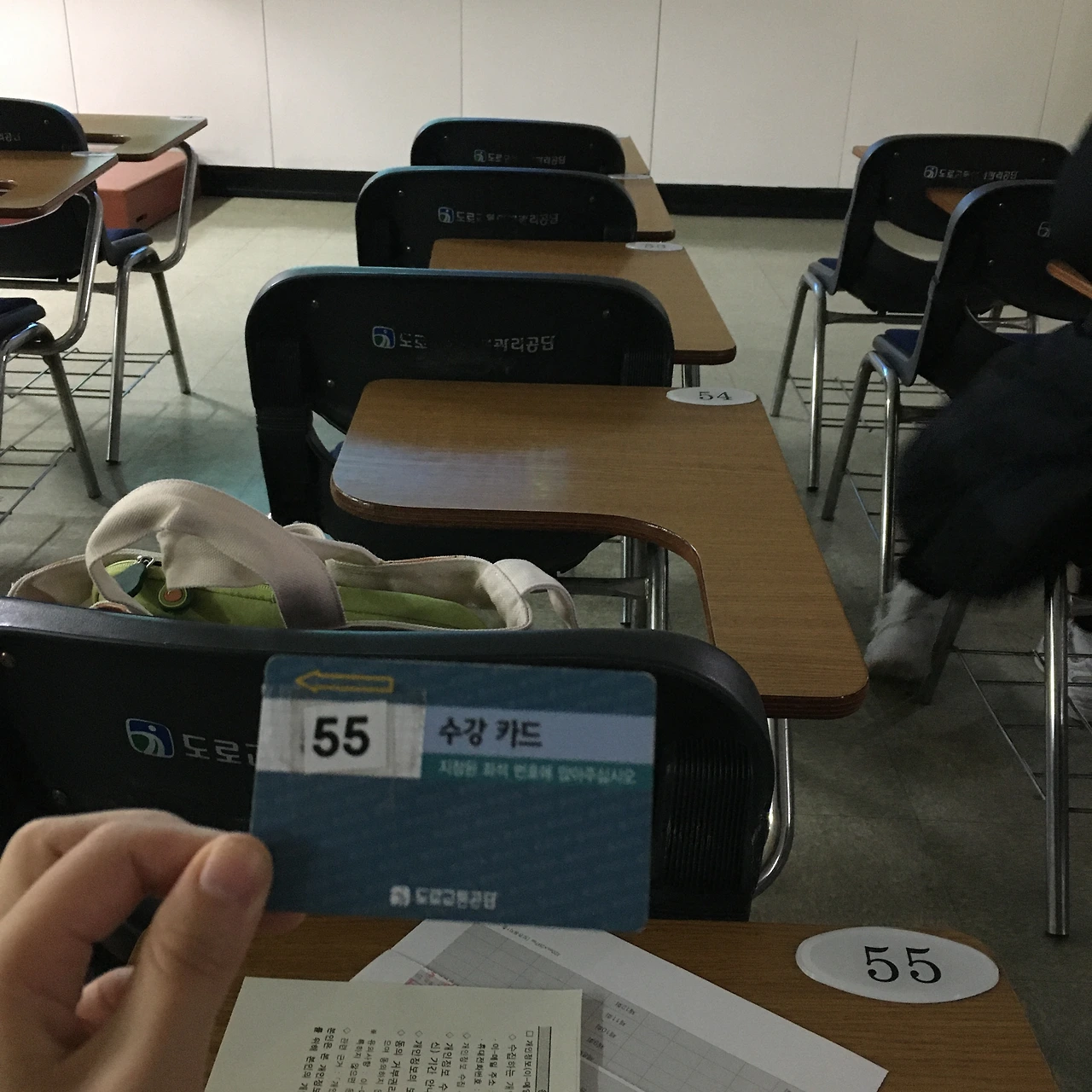 접수해주시는 분께서 응시원서에 붙인 두개 사진 말고 운전면허증 발급할때 사진 하나가 더 필요하다고 미리 말씀해주셨다.