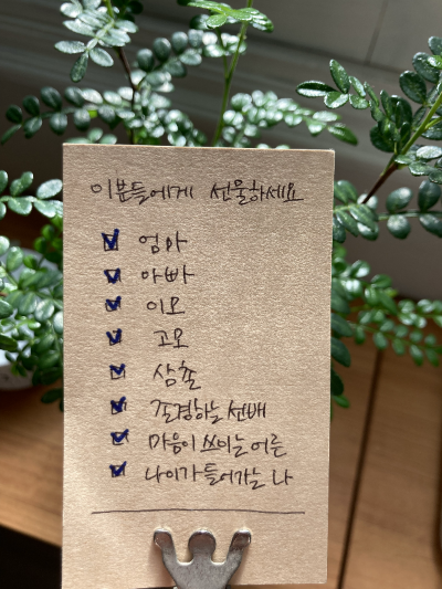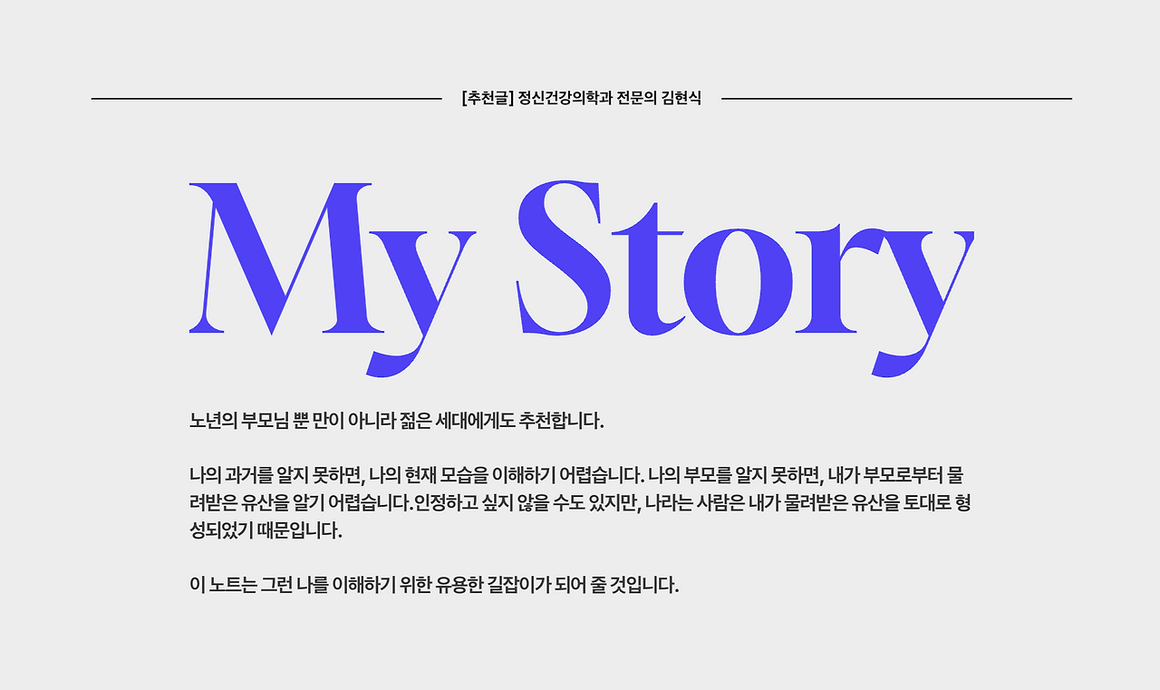 노트를 함께 적어가면서 딸인 내가 엄마를 이해하고 엄마가 무엇에 더 큰 의미를 두시는지 이해하는데 도움이 되었다. 엄마에게 빈 노트를 다시 선물해야겠다. 엄마의 언어로 다시 그분의 인생을 보실 수 있도록 해야겠다.