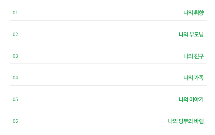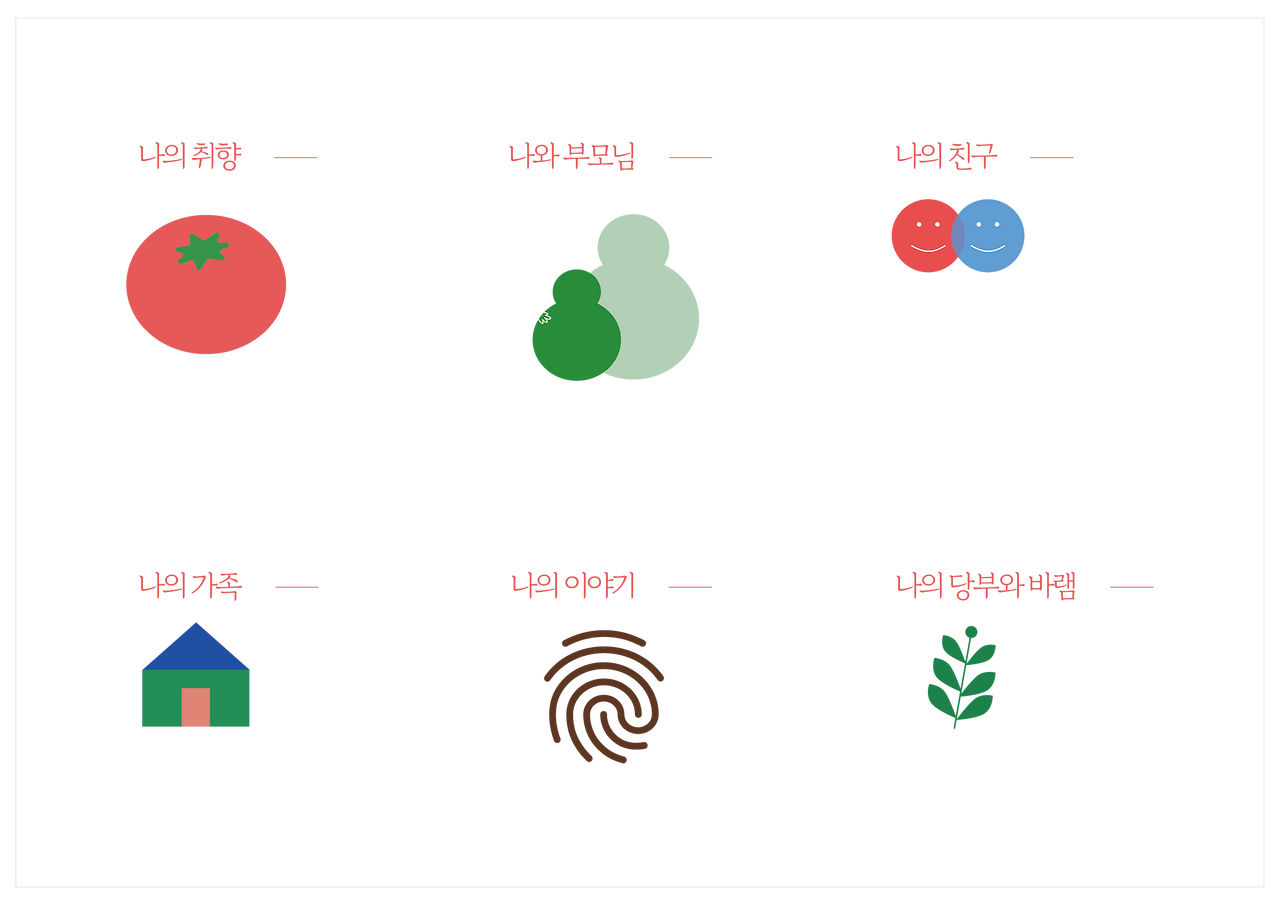 우리를 알기 위한 질문을 6개의 카테고리로 묶었습니다.