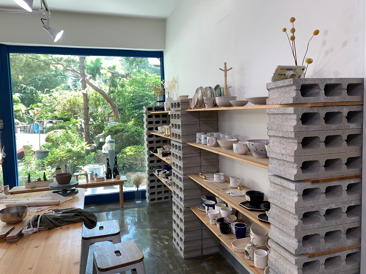 익산 외곽으로 나가야 있을 줄 알았던 도예공방. 이 또한 팀원이 제공해준 정보가 아니었다면 나는 쭉 몰랐을지도. 파랗고 하얗고 나무들이 있는, 주절주절 늘여놓는 딱 ‘내 취향’. 그게 세라믹 스튜디오 지혜와 만난 궁화의 기대감이었다.