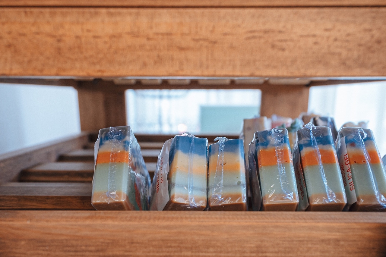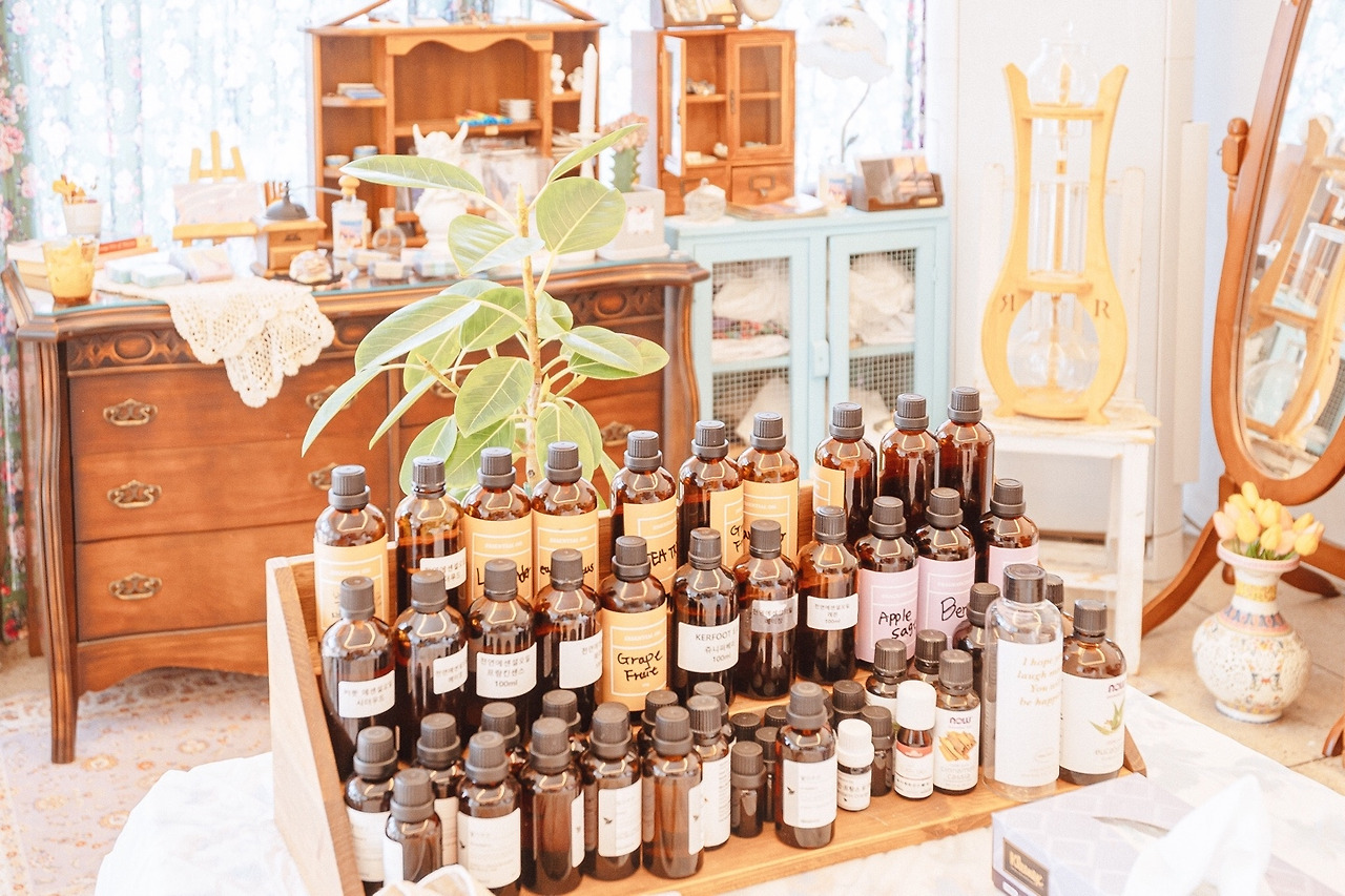 문을 열고 들어가자마자 코로 향기가 쑤욱 들어오며 기분이 좋아지기 시작한다. 실험실 같은 도구들을 곁에 두고 오일이 각각 mm인지, 디자인을 어떻게 할 것인지, 몇 도까지 온도를 낮추어야 하는지- 하나하나 섬세하게 이루어지는 과정을 거치다 보면 마지막 비누에 기포가 생기지 않게 ‘탕-탕-’ 쳐내는 작업을 마지막으로 한 달간의 숙성과정만 남는다. 바짝 집중하고 나니 어느새 우리의 비누 만들기 실험이 끝났다.