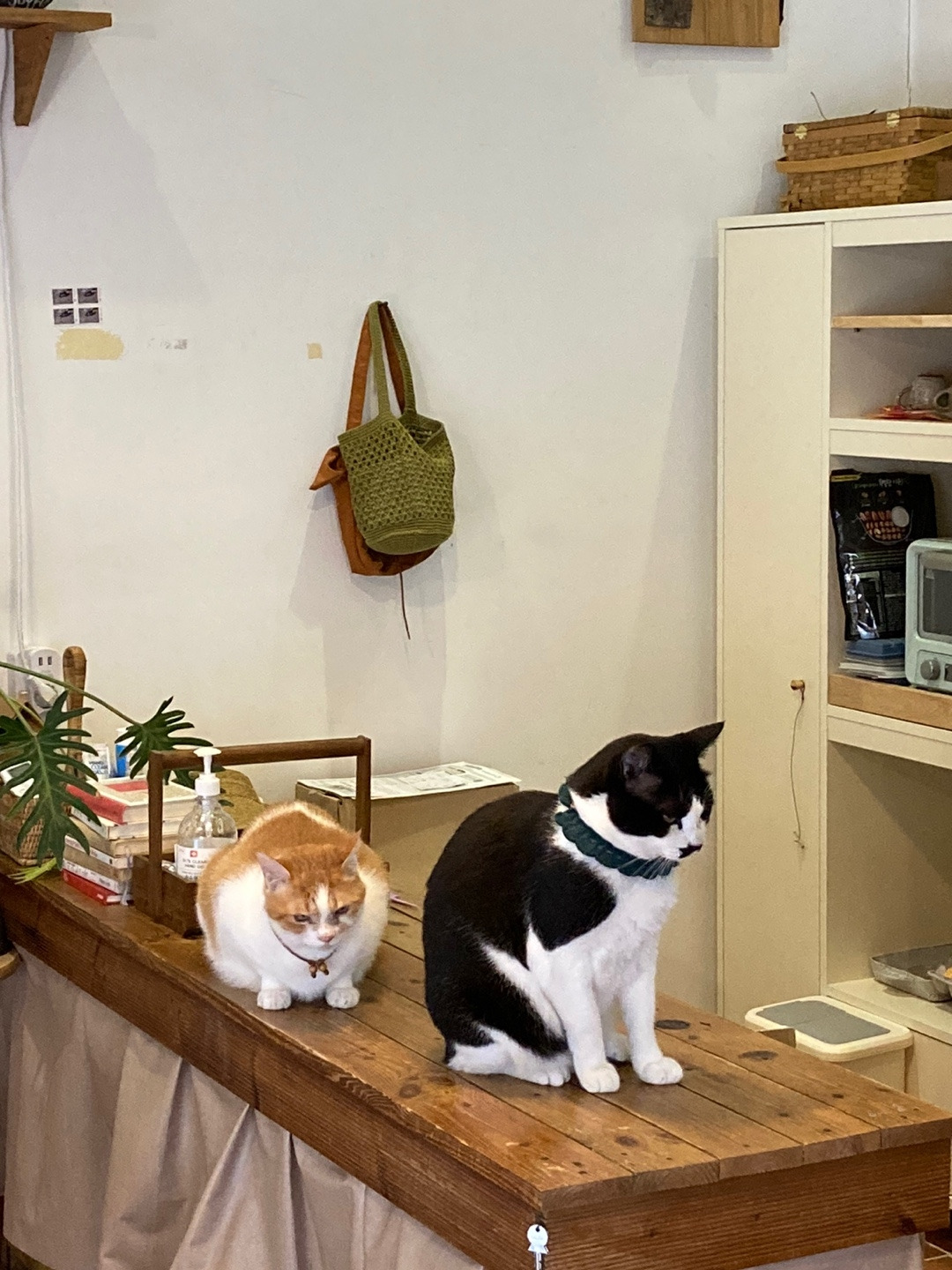 자리를 잡아 앉아있으면 주인들이 먼저 다가오기도 하고, 쓰윽 엉덩이를 내줬다가 폴짝 뛰어 다른 곳으로 휘적거리며 떠난다. 왔다가 떠나는, 애가 타고 사랑스러운 변덕을 보여준다. 그들은 그렇게 자신들의 공간을 활보하며 공간의 주인이 그들임을 뽐낸다. 그러다 보면 '아아 그래, 고양이는 이런 아이들이지, 이렇게 심드렁한 표정으로 잔뜩 사랑스러워지는 그런 아이들이지.'라고 읊조리는 나를 발견한다.