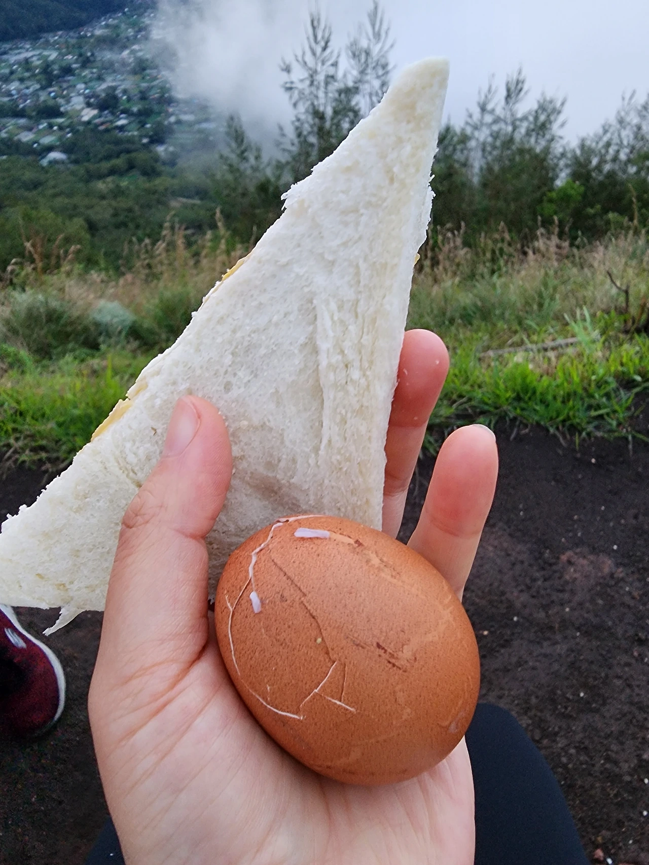 산을 오르는 내내 우리의 컨디션을 챙겨주었던 가이드는 뚝딱 샌드위치와 계란을 만들어왔다. 함께 고생했던 우리 팀은 일출을 보며 나눠준 샌드위치와 계란을 먹었다. 바투르산의 돌을 갈아서 만들었다는 팔찌도 기념으로 함께 샀다. 돌아가며 얼마나 더 올라가야 하나 물어보고, 일출이 보이자마자 다 같이 탄식하는 우리 팀 사람들을 보면서 국가도 성별도 인종도 모두 다르지만 결국 사람은 다 똑같다는 생각을 했다.