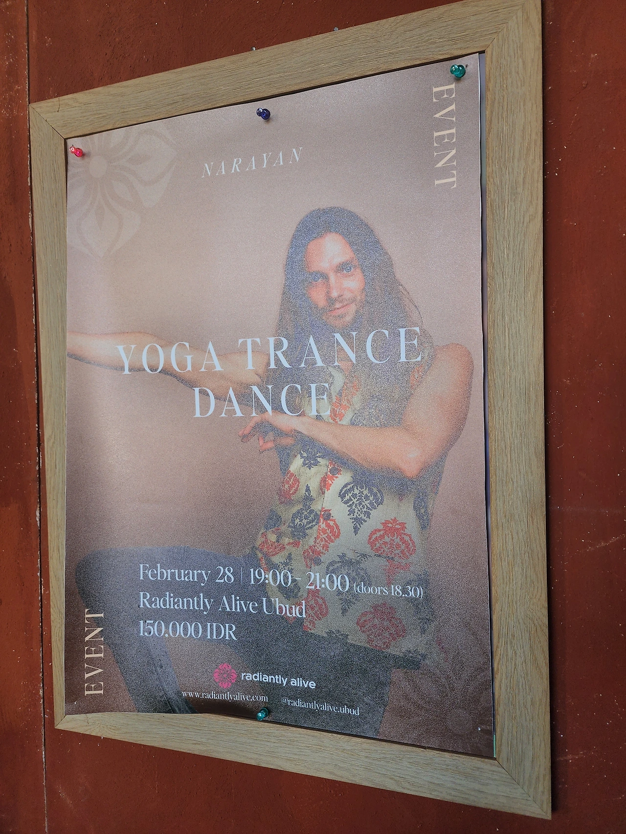우붓 곳곳에는 요가원들이 참 많은데 그 중에서 나는 가장 여행자들이 많이 찾는다는 Yoga Barn, Radiantly Alive, Alchemy Yoga&Meditation Center 를 자주 이용했다. 각 홈페이지에 들어가면 수업 시간표와 요금을 확인할 수 있고, 오프라인으로 센터에 방문하면 주간 수업이 적혀있는 시간표를 나눠주기도 한다. 23년 3월 기준 1개 클래스 당 150k IDR (약 12,000원) 이었고, 센터마다 다르지만 10회권 혹은 1주 이용권, 1달 이용권 등이 있어 할인이 가능하다.