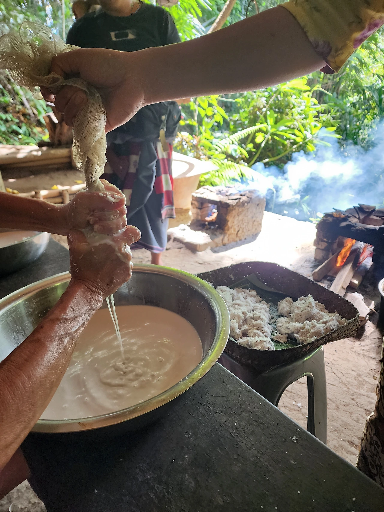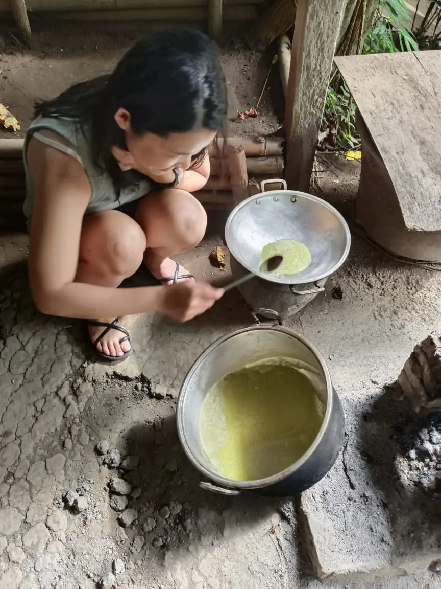 이 코코넛 워터를 끓이면 물 - 크림 - 오일로 저절로 분리된다. 우리의 미션은 떠오른 오일을 국자로 살살 걷어내는 것. 걷어낸 오일을 다시 한번 튀김소리가 날 때까지 끓이면 코코넛 오일은 완성된다! 국자로 걷어내면서 달려온 코코넛 크림은 오일 안에서 튀겨져서 엄청난 풍미의 밥반찬이 된다. 이걸 곧바로 떠먹어봤는데 그 감동이란! 이제까지 한 번도 느껴보지 못한 감칠맛이었다.