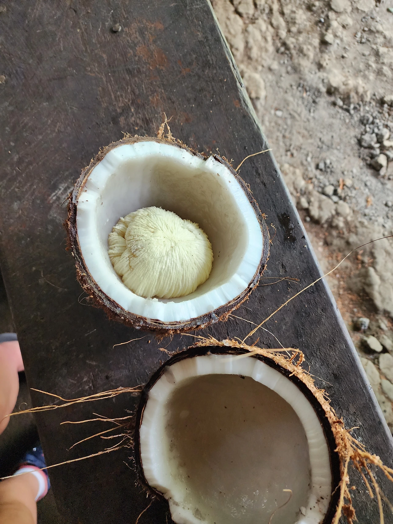 거칠한 껍질의 코코넛을 갈랐더니 봉실한 코코넛 에그가!