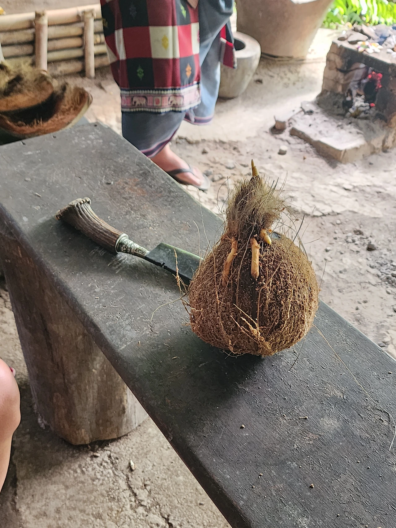 붐붐이 어릴 때 코코넛을 들고 놀았다는 오두막에서 진행되는 코코넛 오일 만들기! 자연 속의 소담한 곳이었다.