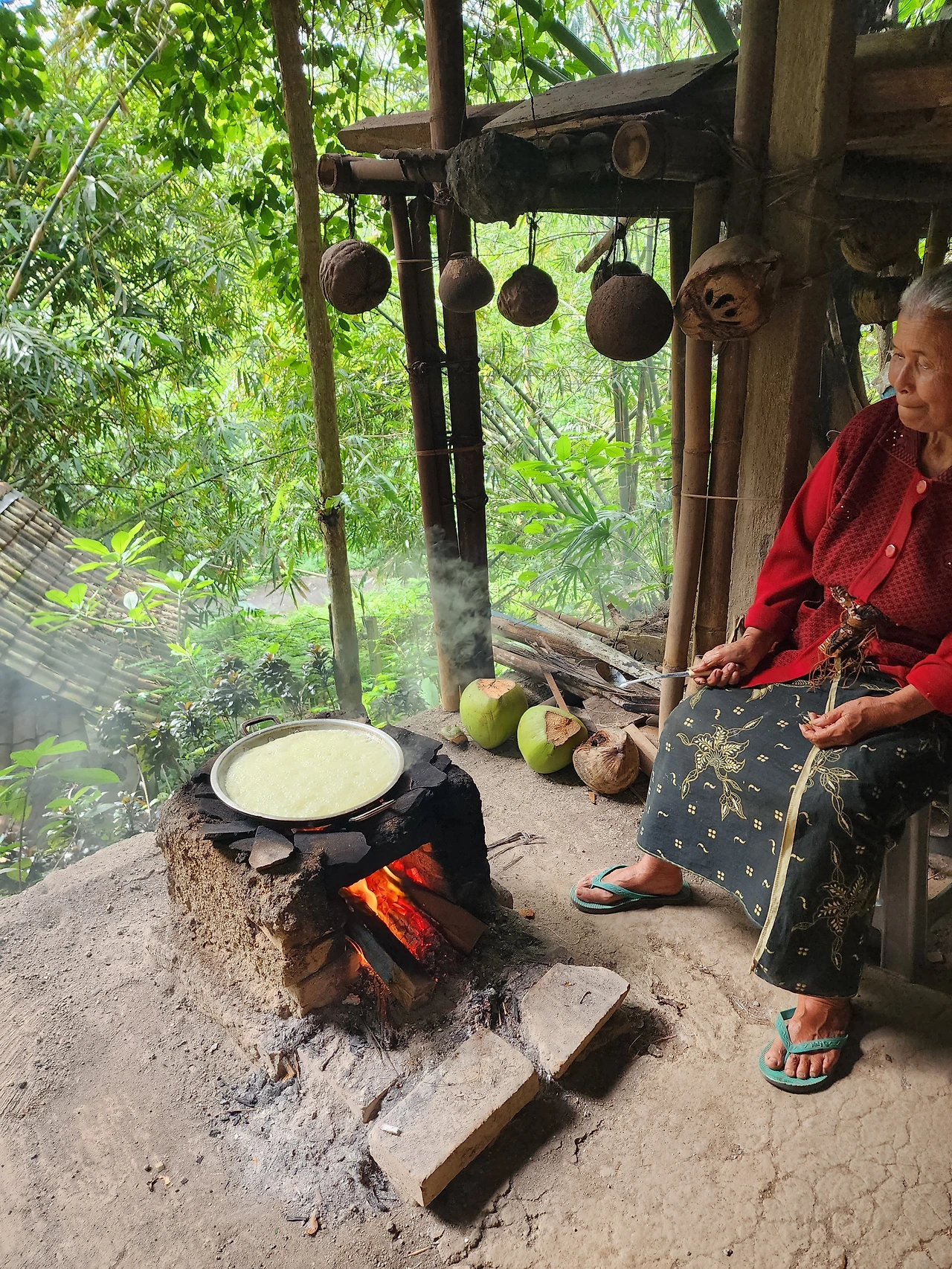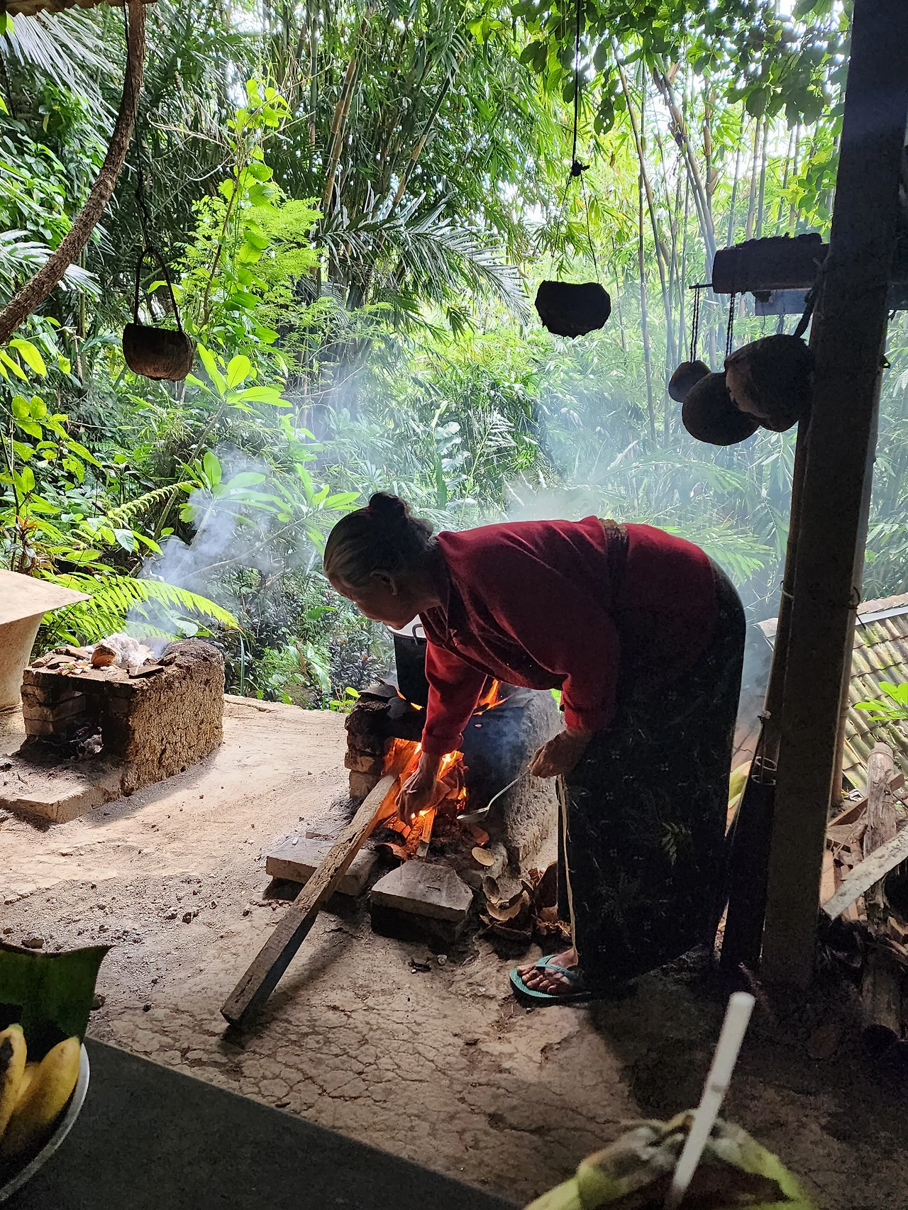 코코넛 바나나 타코를 먹으라며 내어주고서는 불 앞을 지키시던 붐붐의 어머니. 정말 고우셨다.