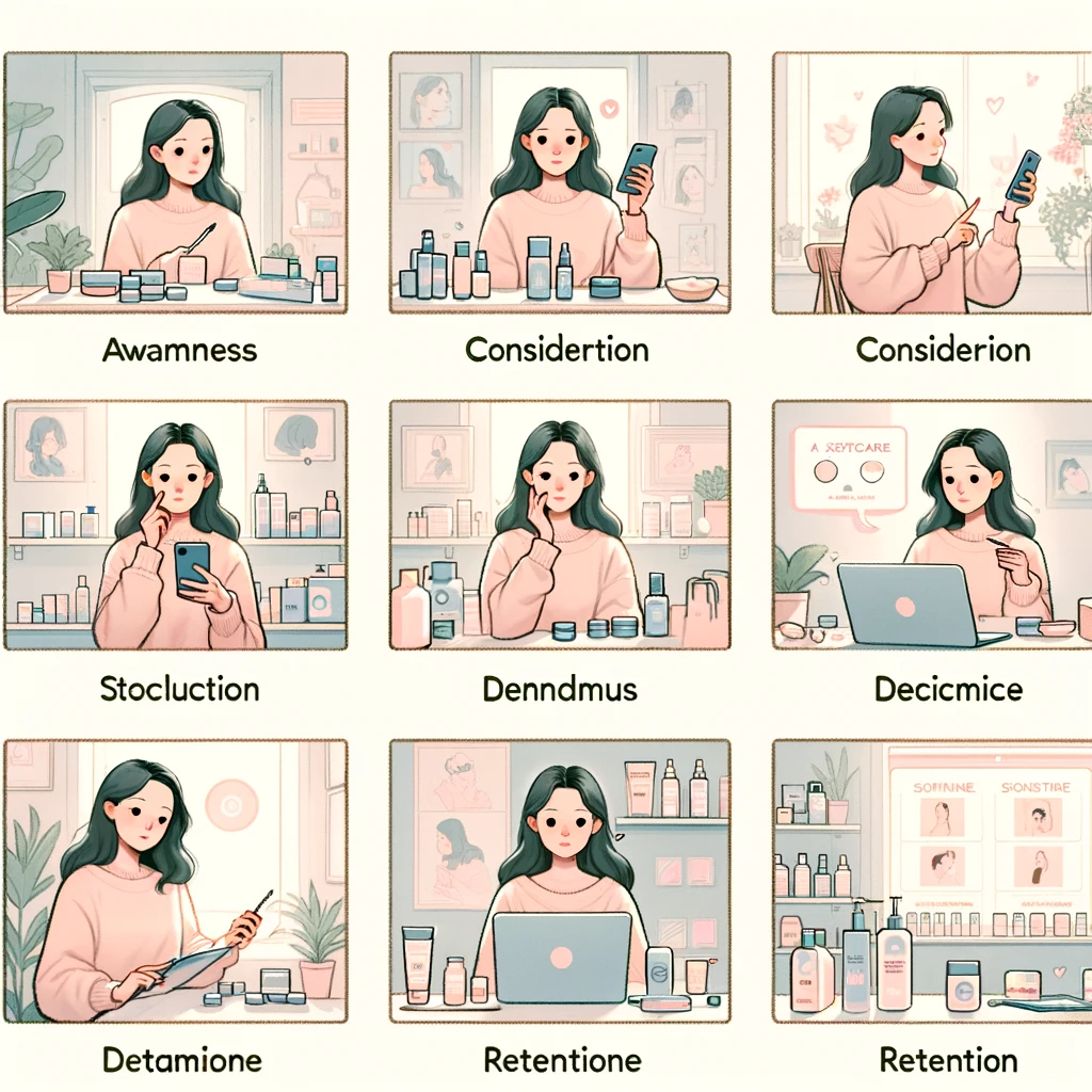 구매여정은 다양한 형태로 세분화해 볼 수 있지만, 큰 틀에서 인식(Awareness) ⭢ 고려(Consideration) ⭢ 결정(Decision) ⭢ 구매 후(Post-Purchase) ⭢ 유지(Retention)로 구분할 수 있습니다.