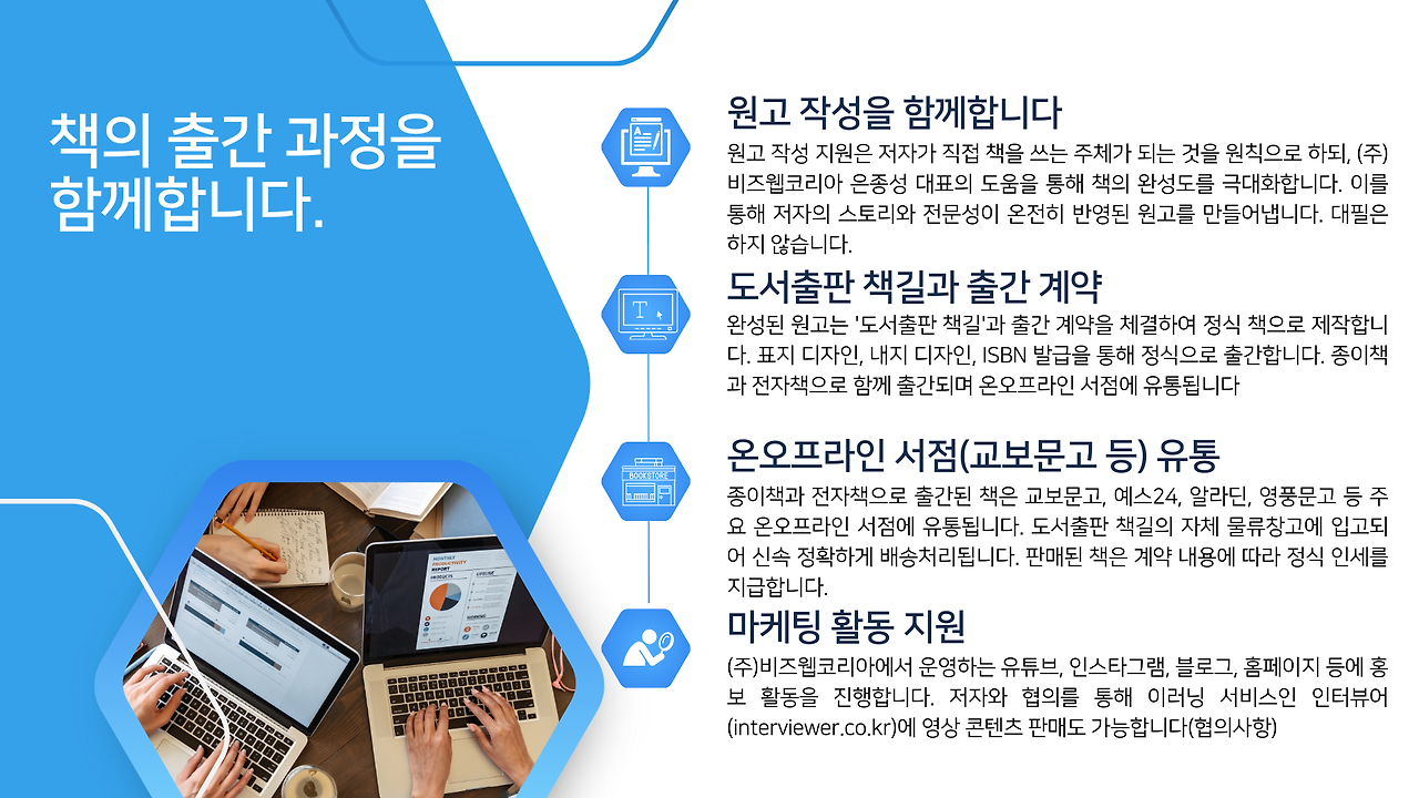 원고 작성부터 종이책(전자책) 출간, 그리고 출간 후 마케팅 지원까지