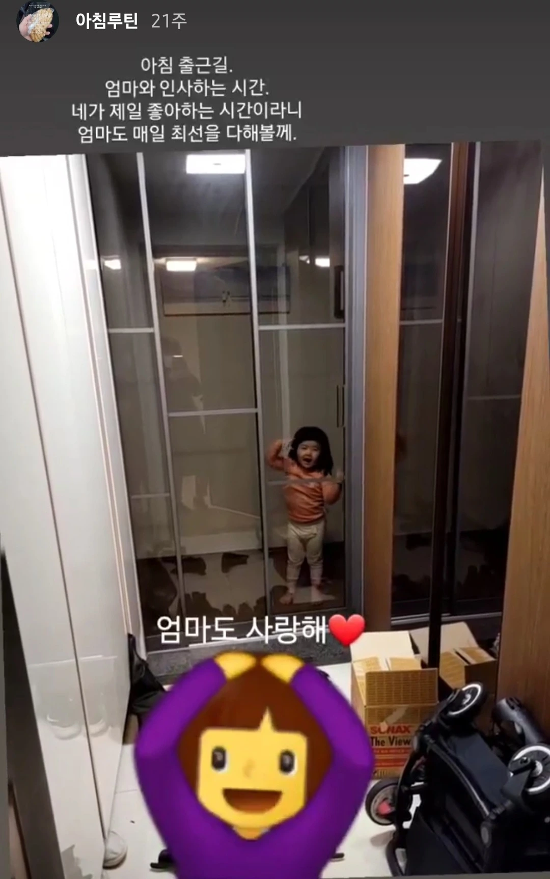 그리고 다음날 아침 출근 준비를 하는 엄마의 인기척에 깬 아이가 뛰어나오며 제게 안깁니다. 요즘 피곤해했던 터라 더 재우고 싶었는데 엄마가 보고 싶어서 일찍 일어났다고 말해주는 아이입니다. 그 모습이 사랑스러워서 꼭 안아줬습니다.