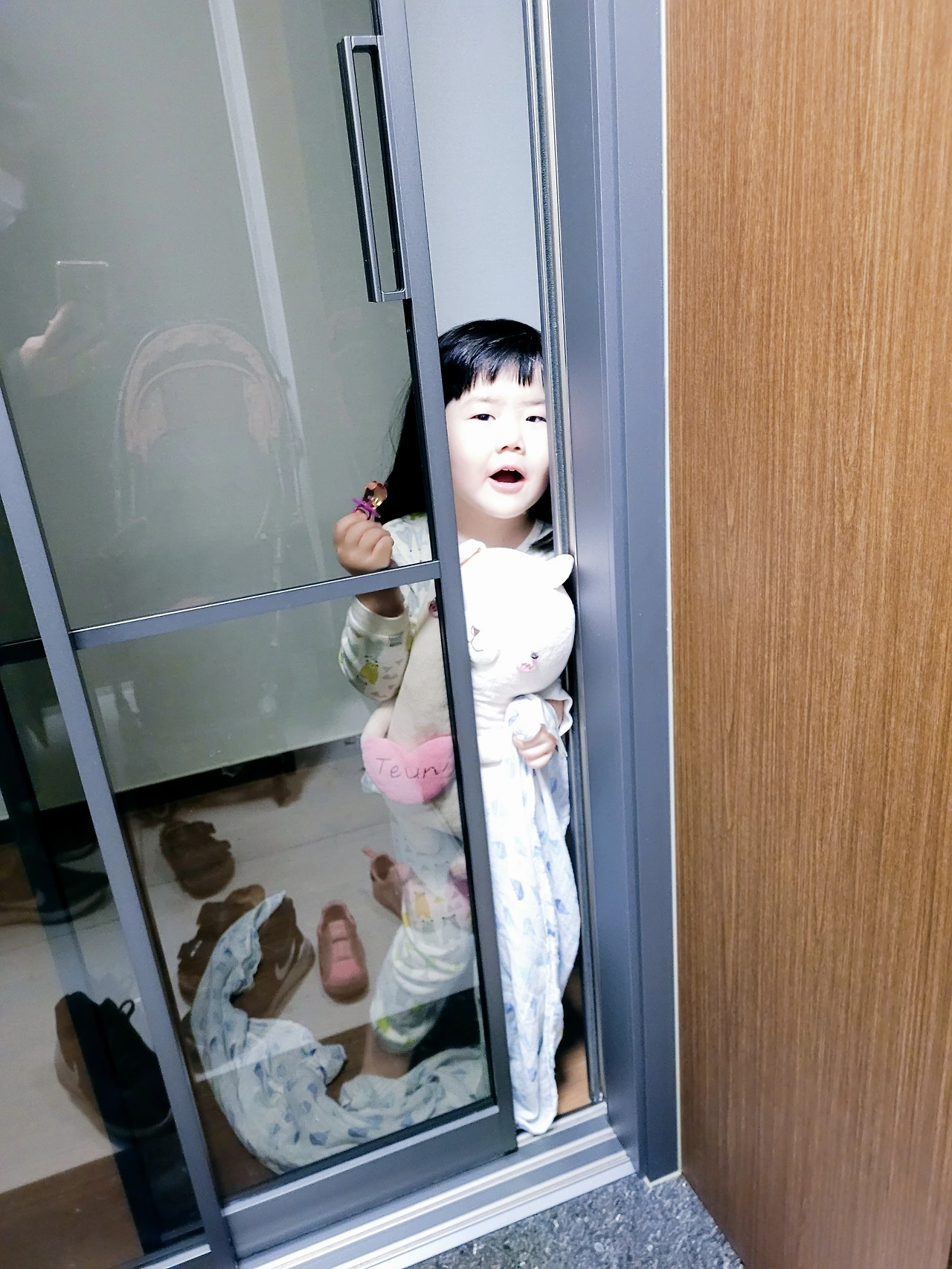 어젯밤 걱정 인형에게 속마음을 얘기하는 것만으로 혀니는 조금 힐링이 되었던 걸까요. 다행히 아침 표정이 다시 밝습니다. 엄마도 아이의 사랑을 가득 충전하고 출근했습니다.