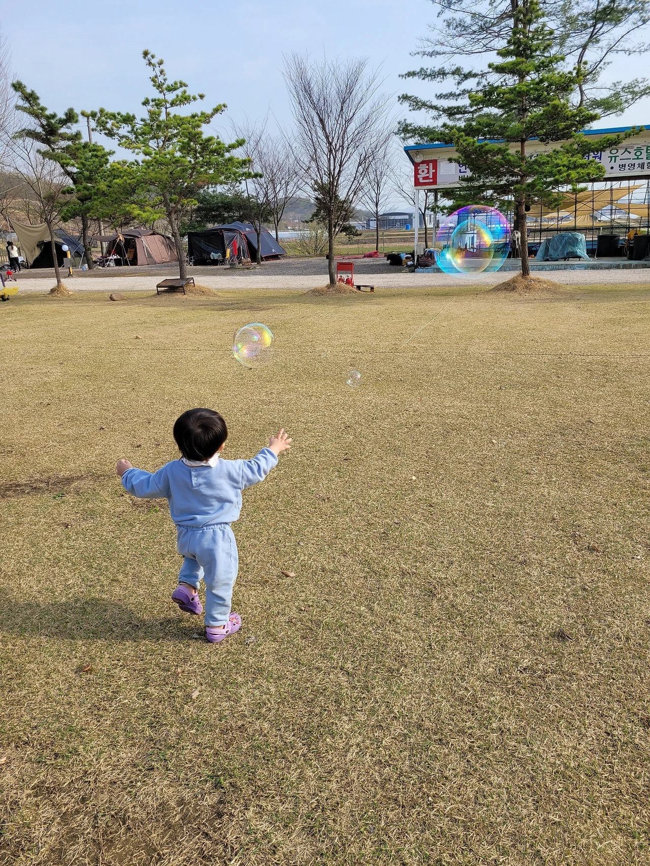오늘은 18개월 저희 막둥이의 인생 첫 캠핑이자, 첫 비눗방울 놀이, 불멍을 경험한 날이에요.