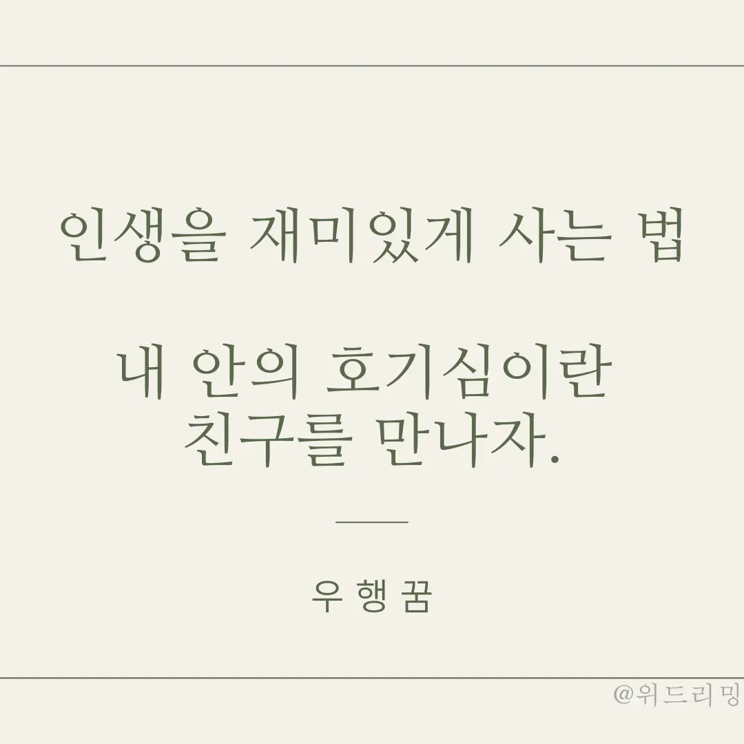 이렇게 저는 오늘도 인생을 좀 더 즐겁고 행복하게 살기 위한 장치로 내 마음의 호기심 버튼에 on을 눌러봅니다. 작은 변화, 늘 익숙한 만남도 새로움을 느끼며 즐겁고 설레며 반가워집니다.