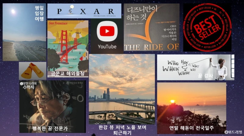 우행 꿈 동기부여를 위해 꿈 전문가들을 꾸준히 만난다.(켈리최, 김승호 회장님, 고명환작가님, 웨인다이어에게 영향을 준 생가나 책들)