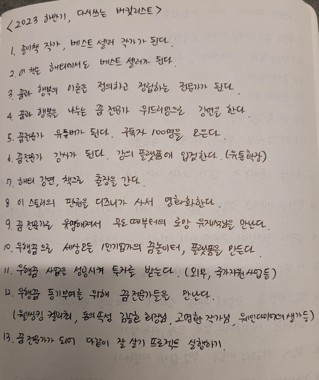 < 다시 쓰는 버킷 리스트, 2023 하반기부터 >