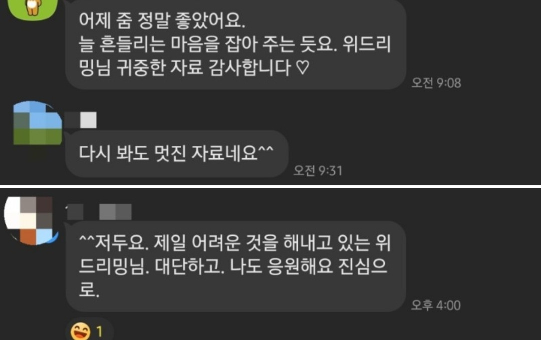 인정받으려고 시작한 일이 아니었는데 뭔가 함께하는 분들께 인정을 받으니 이게 맞나? 내가 원하던 것이었나?라는 생각에 글도 생각도 자꾸 멈추게 되더라고요.