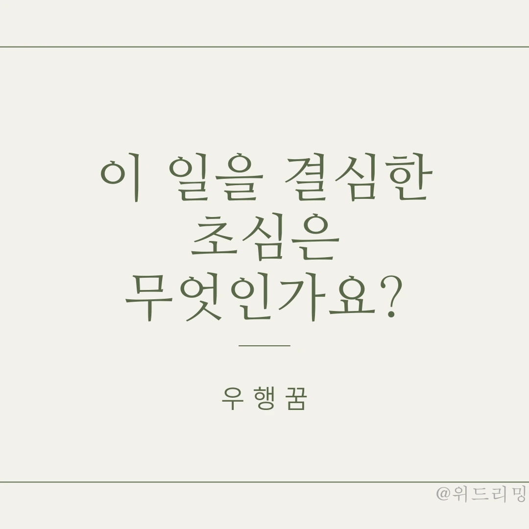 막상 그 일에 착수해 수행해가다 보면 처음에는 생각지 못했던 다른 새로운 문제들이 발생하며 그 일들을 해결하느라 초심. 본질이 흐려지기 쉬워요.