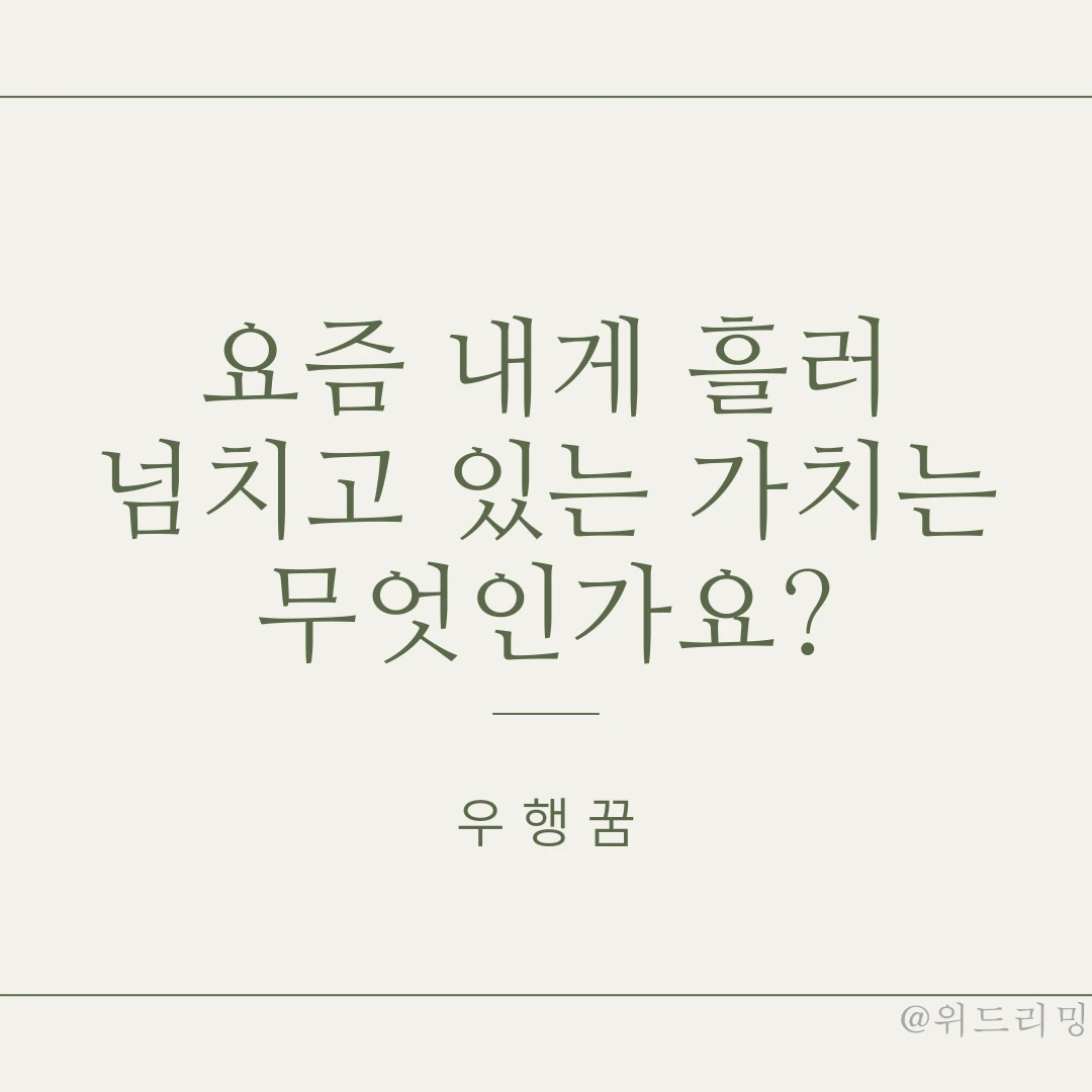 내게 흘러넘치는 가치는 무엇일지, 내 삶을 주도해 가는 핵심 가치는 무엇인지 돌아보자.