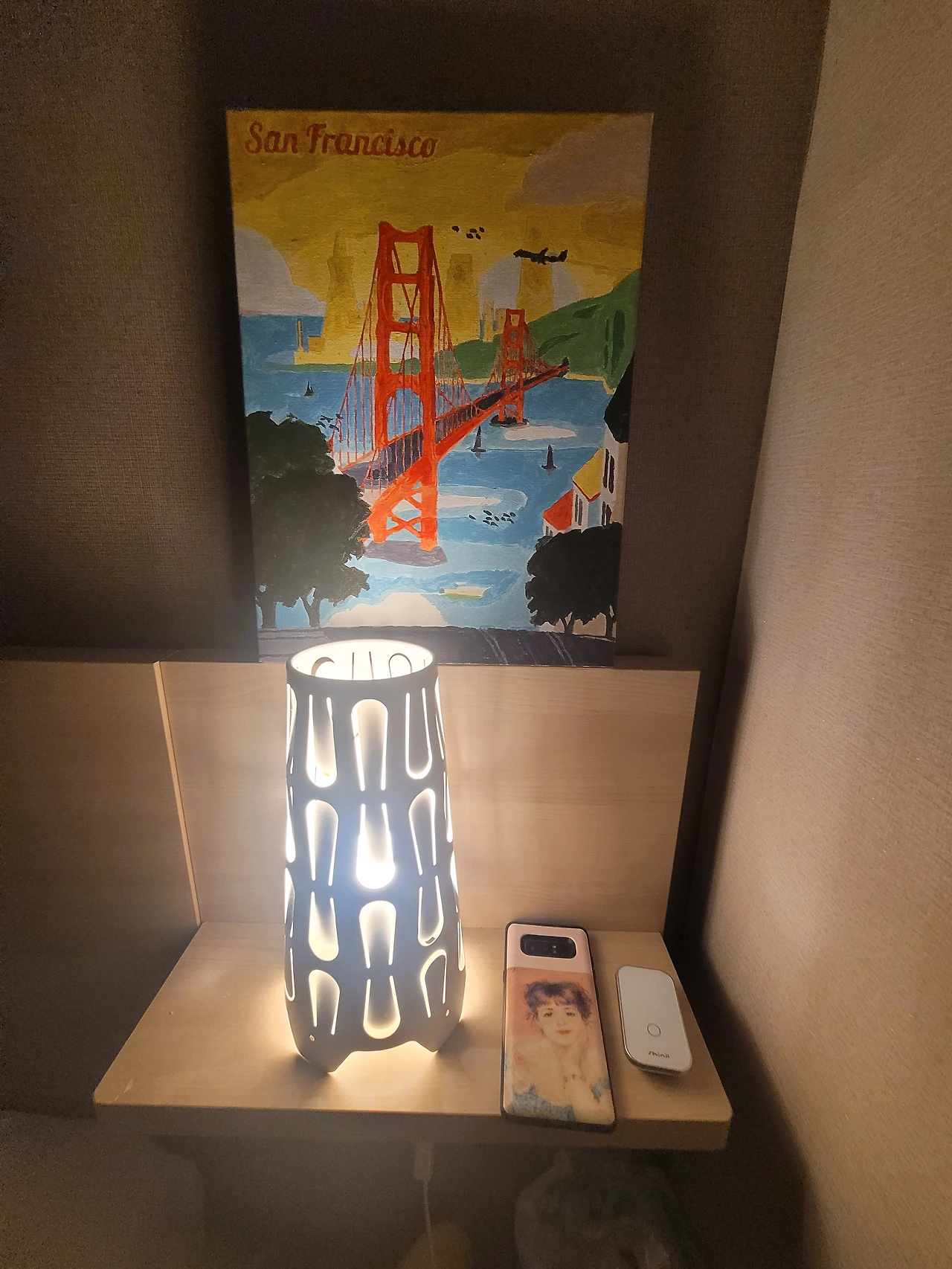 나는 언젠가 베스트셀러 작가가 되어 그 책이 해외에 판권으로도 팔리고, 디즈니에도 영화화되어 미국으로 해외 출장을 가고 싶단 꿈을 가지고 있다. 그래서 우리가 자는 방엔 직접 채색한 미국 샌프란시스코 그림이 있다.