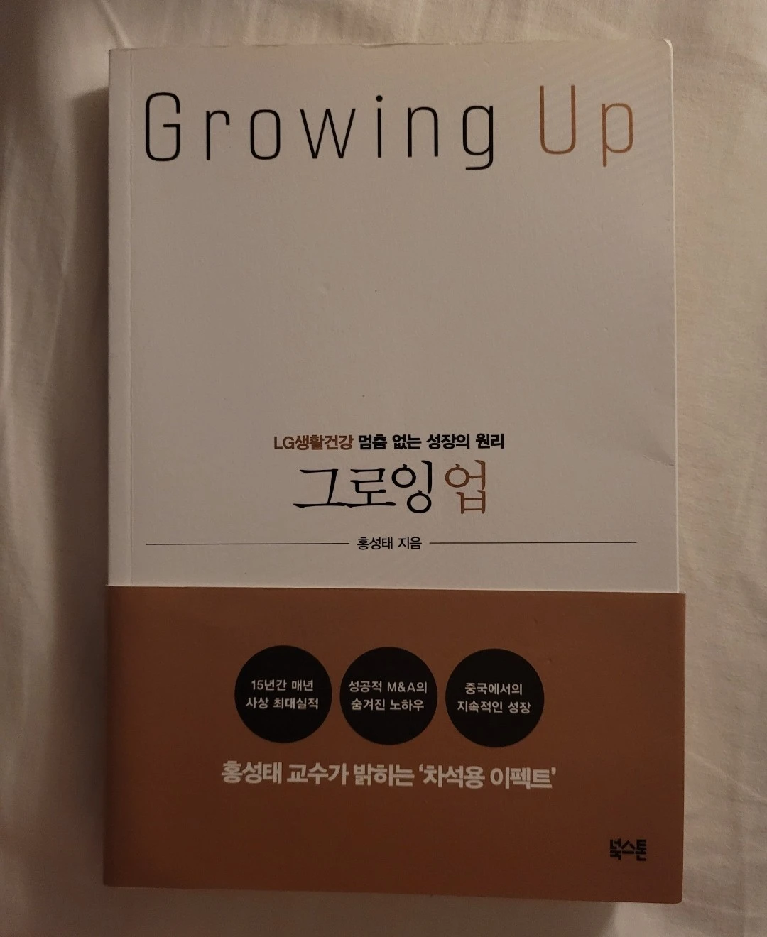 제 첫 회사가 Lg생활건강 차석용 회장님이 이끄는 제과 회사였어요. 조직 생활에서 방향을 잃을 때 백과사전처럼 꺼내보는 자기 계발 마인드의 끝판왕이라 할 수 있는 '그로잉 업' 그분의 책이에요.