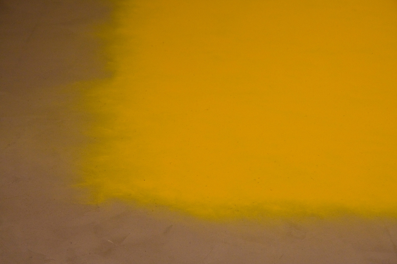 한 번 상상해보자. 어두침침하고 고요한 갤러리에 밝은 광채가 조용히 내려앉았다. 그것은 봄날의 햇살처럼, 금세 따스한 기운으로 공간을 가득 채운다. 그 광채는 멀리서 보면 단순한 노란색 그림처럼 보이지만, 가까이 가면 고운 가루가 펼쳐져 있다. 이 샛노란 가루의 정체는 다름 아닌 꽃가루이다. 작품의 재료를 아는 순간, 따스했던 기운에 좀 더 엄숙하고 신비스러운 분위기가 더해진다.