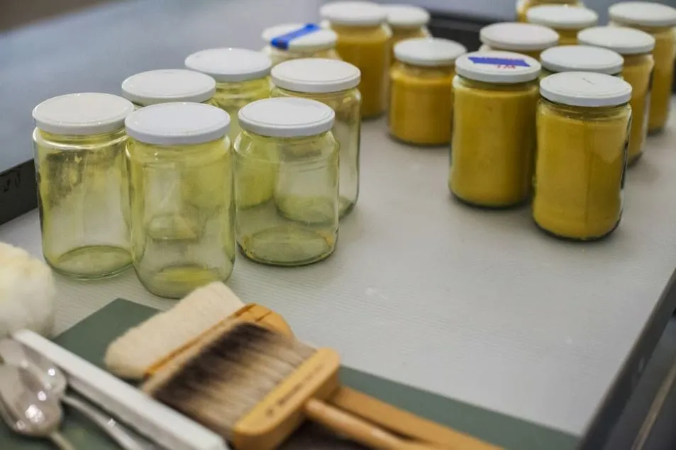 그는 1977년부터 그가 살고 있는 독일 남부의 작은 마을 주변에서 꽃가루를 직접 모았다. 꽃이 피는 계절이 오면 매일 산과 들에 오가면서 정성스럽게 꽃가루를 채취했다. 작은 유리병에 꽃가루를 가득 채우기 위해서는 수백 번이 넘는 발걸음이 필요하다. 그는 수행하듯 조용히 대자연 속에서 꽃가루를 모았다. 이렇게 수십 년 동안 자연의 작지만 위대한 선물이 모여 지금의 <헤이즐넛에서 온 꽃가루>가 되었다.