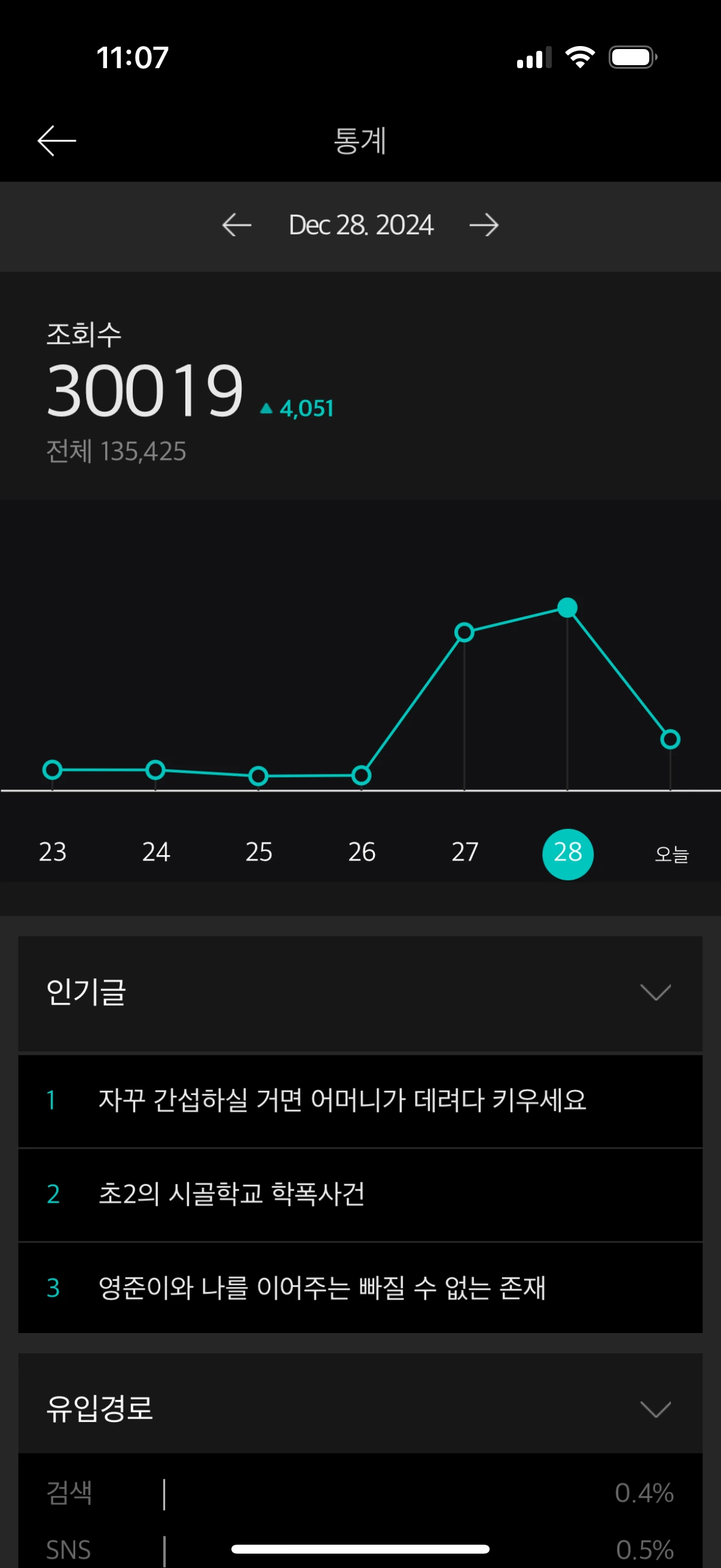 그 글 역시 또 내 사연을 소재로 글을 썼고 다음 포털사이트에 내 글이 노출된 후 조회수 폭등이 일어났다.