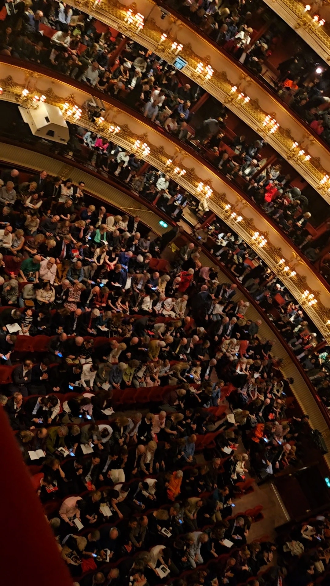 공연장 안은 2,000석은 족히 되어 보이는 붉은 벨벳 의자와 100여 개의 미니 스탠드 조명이 주황빛을 뿜어내며 화려한 분위기를 자아냈다. 중앙의 둥근 돔형 천장에는 금박 장식이 더해져, 중세 시대 백작 부인이라도 된 듯한 기분이 들었다.