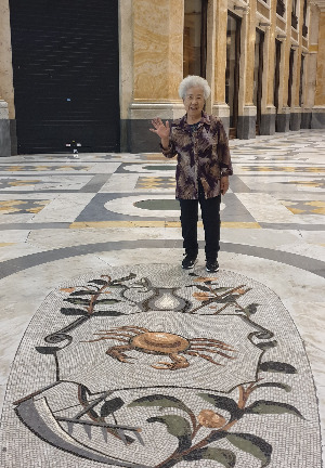 캘러리아 움베르토 1세(Galleria Umberto I)는 나폴리의 중요한 랜드마크이자 가장 유명한 쇼핑 아케이드였다. 우리가 도착한 시간에는 상점들이 모두 문을 닫아, 성당처럼 조용한 분위기가 느껴졌다. 원형 유리지붕 아래 바닥을 자세히 보니, 별자리 모양의 타일이 둥글게 배치되어 있었다. 별자리가 생소한 엄마는 궁금해했다.