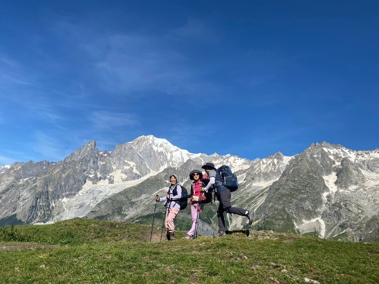 누군가 나의 마음 소리를 대신해 주었다. 고개를 돌리니 여섯 명의 한국인 그룹이 있었다. 평균 나이 일흔여섯. 젊은 시절 뉴질랜드로 이주한 그들은 30년 넘게 산을 오르며 친목을 다져왔다고 했다. 몽블랑 하이킹을 위해 오랜 기간 준비했지만, 예상보다 거친 산길에 부딪혀 제시간에 숙소에 도착하지 못했고 짐이 너무 무거워서 가져왔던 한국 음식을 버리고 와야 했다는 아쉬움을 털어놓았다.