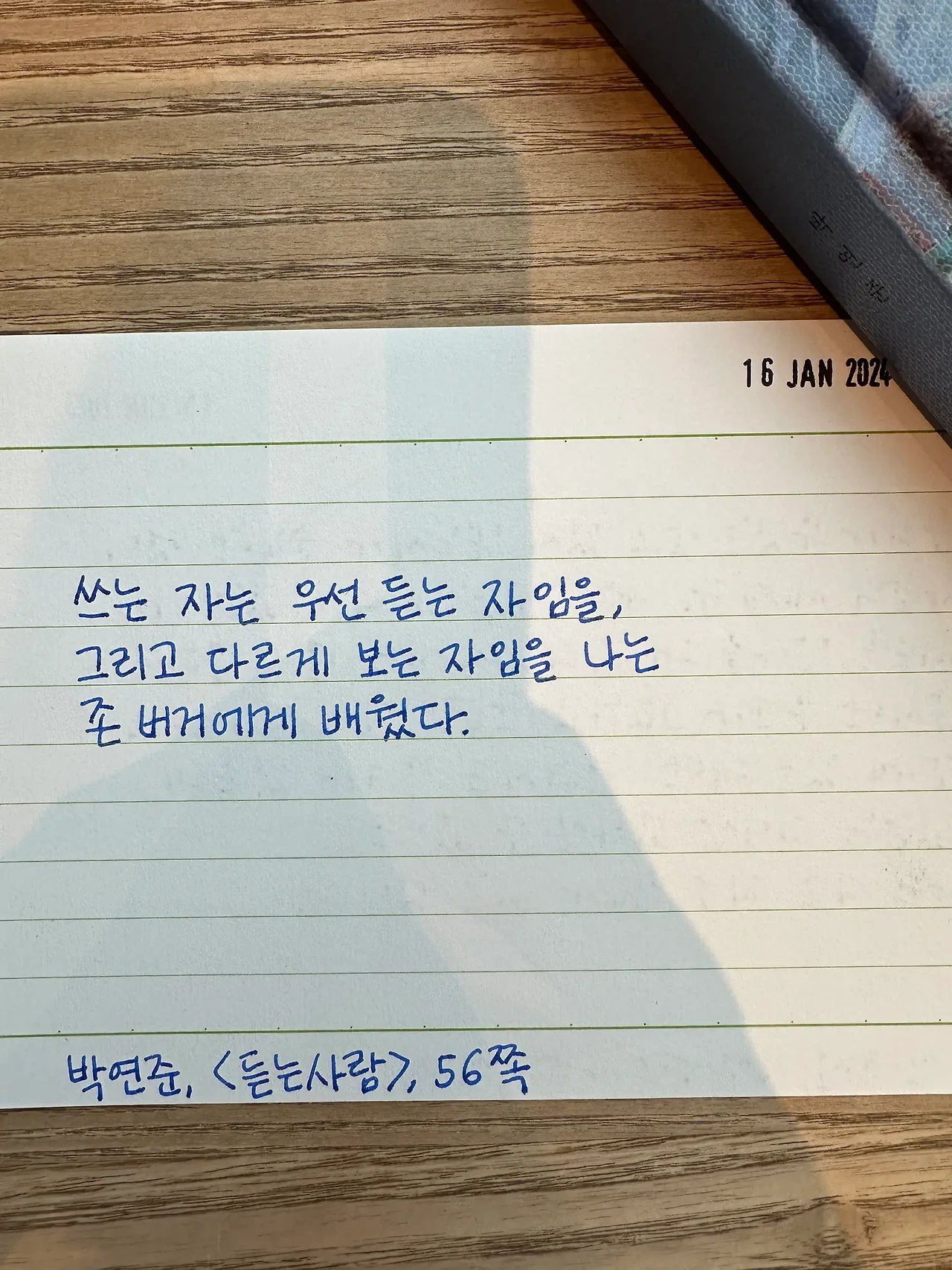 듣는 능력이 현저히 떨어졌어요. 나이 먹는 증거일까요? 이 문장을 적으며 다짐했어요. 더 적극적으로 들을 거야.