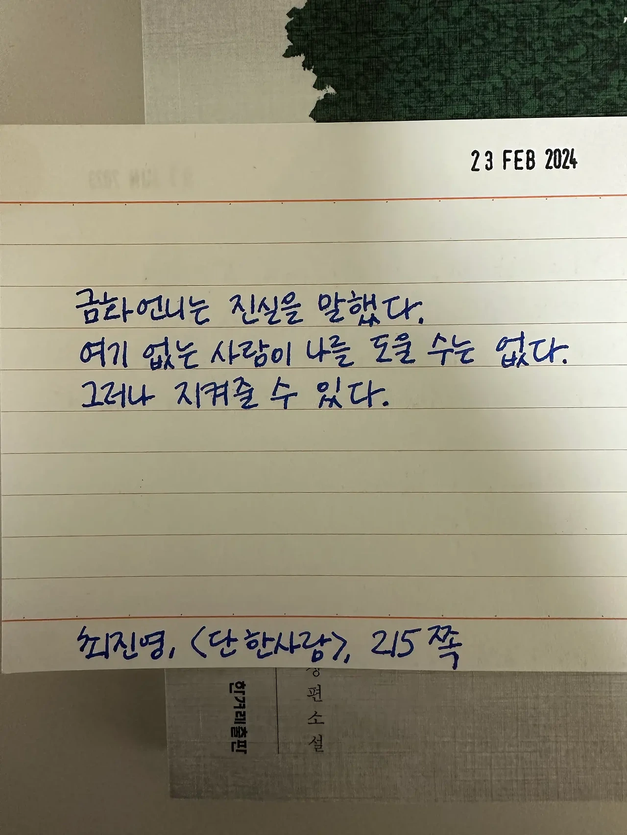 금화 언니는 진실을 말했다. 여기 없는 사람이 나를 도울 수는 없다. 그러나 지켜줄 수 있다.