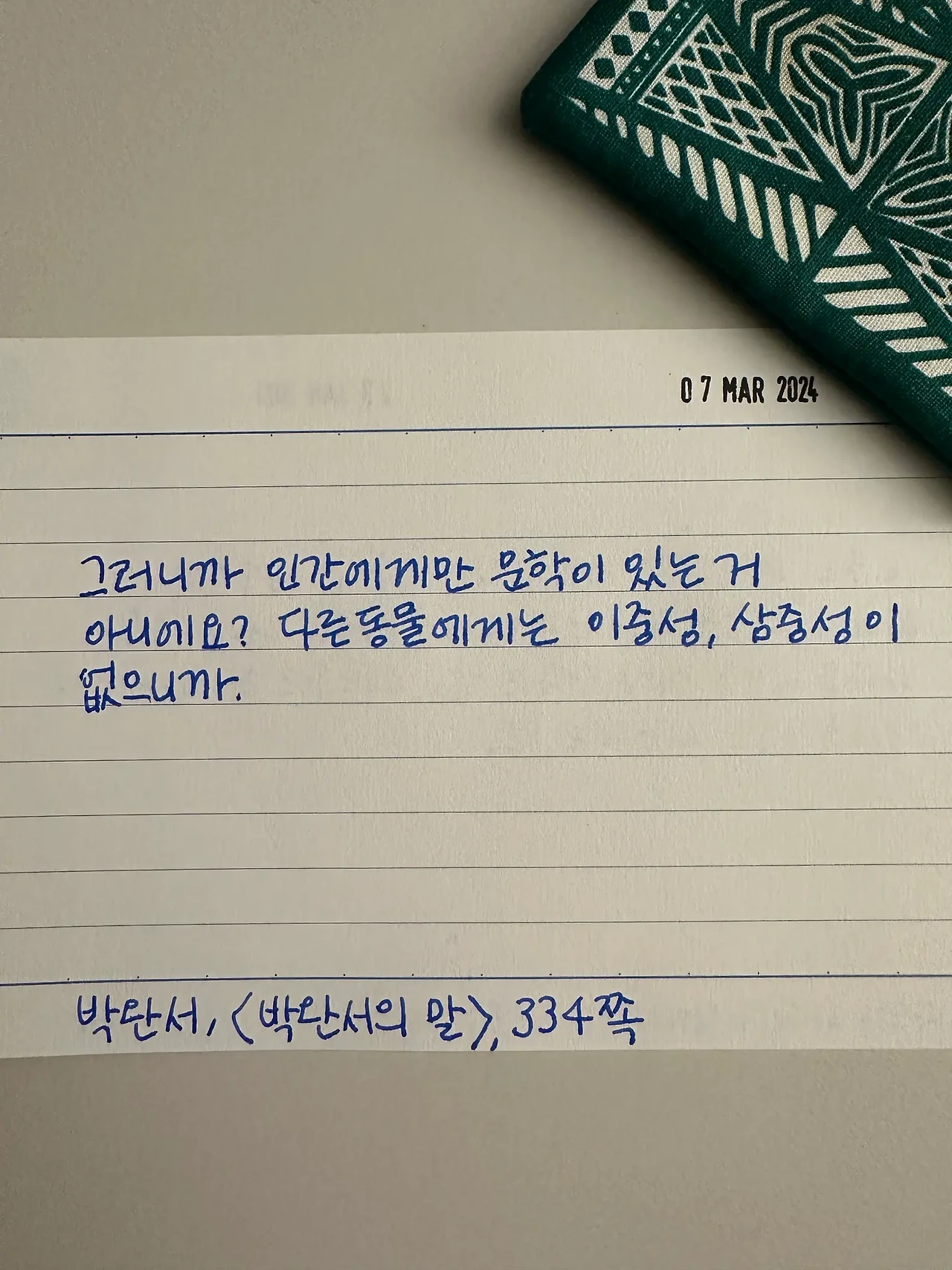 그러니까 인간에게만 문학이 있는 거 아니에요? 다른 동물에게는 이중성, 삼중성이 없으니까.