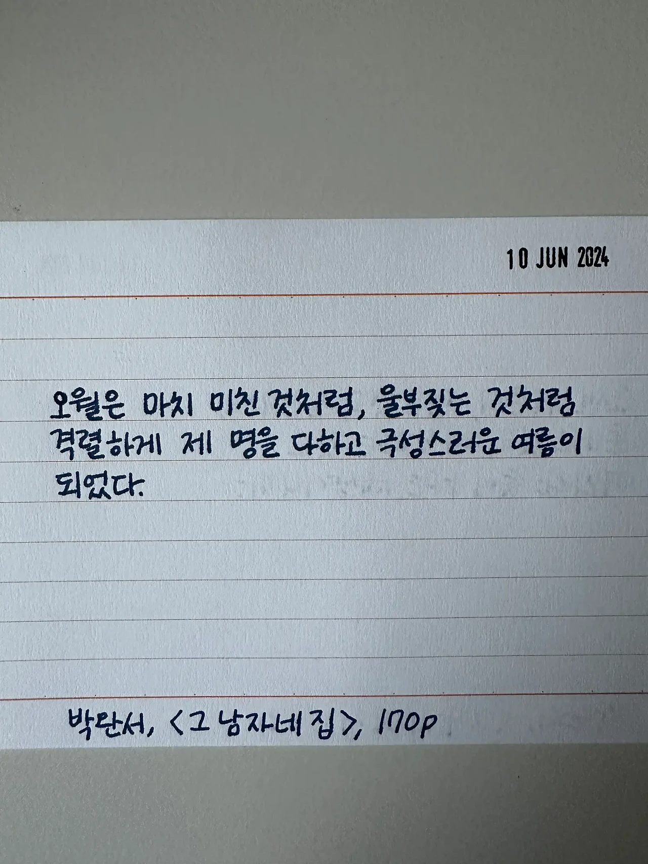 오월은 마치 미친 것처럼, 울부짖는 것처럼 격렬하게 제 명을 다하고 극성스러운 여름이 되었다.