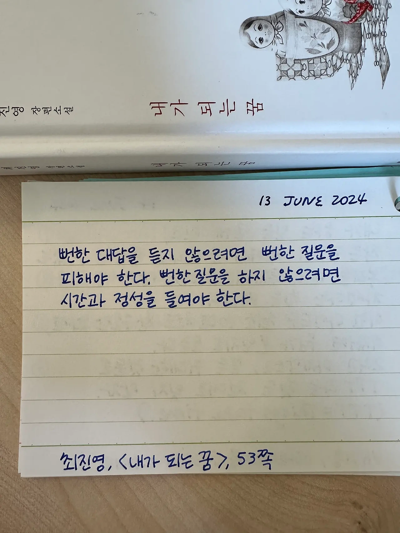 뻔한 대답을 듣지 않으려면 뻔한 질문을 피해야 한다. 뻔한 질문을 하지 않으려면 시간과 정성을 들여야 한다.