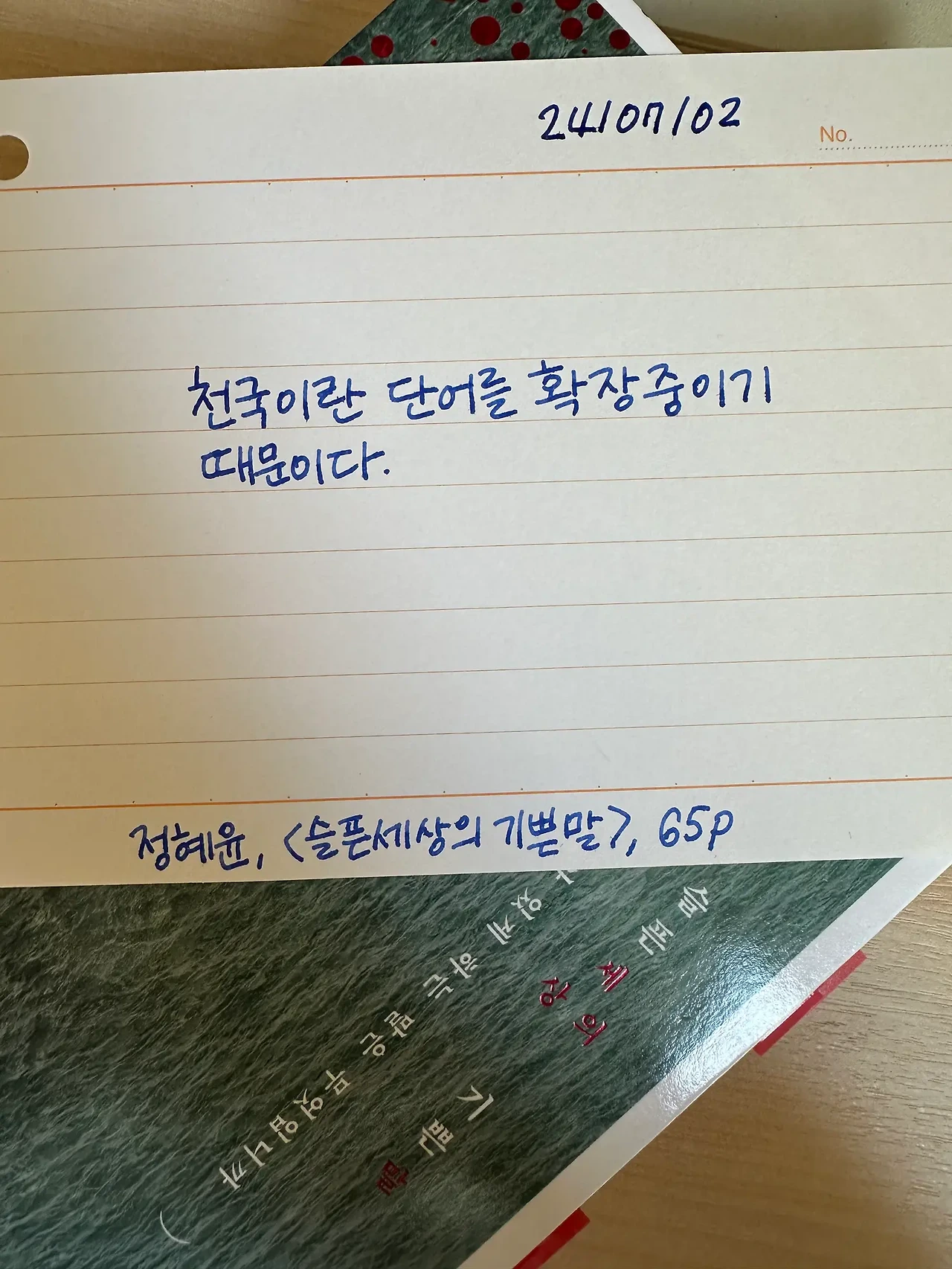 이 문장을 읽다가 아 이건가, 잘 사는 건? 어쩌면 천국이란 단어를 계속 확장하는 일이겠다!