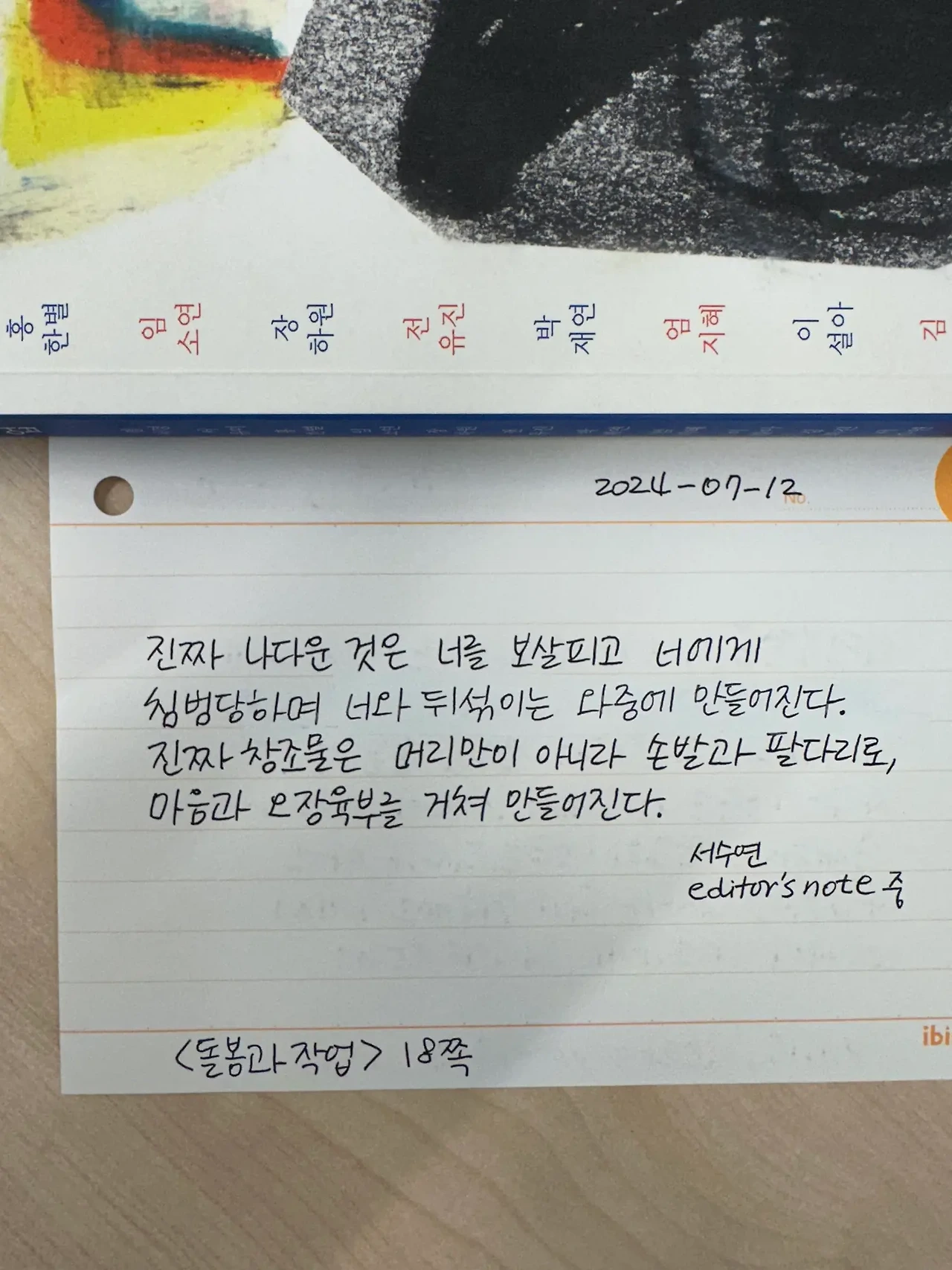 진짜 나다운 것은 너를 보살피고 너에게 침범당하며 너와 뒤섞이는 와중에 만들어진다. 진짜 창조물은 머리만이 아니라 손발과 팔다리로, 마음과 오장육부를 거쳐 만들어진다.